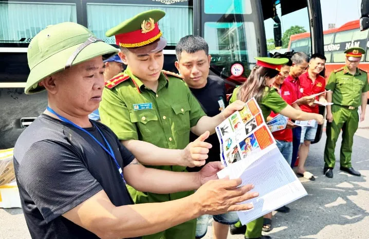 Công an thành phố Hà Nội tuyên truyền phòng, chống ma túy tại Bến xe Nước Ngầm. Ảnh: Đỗ Chí