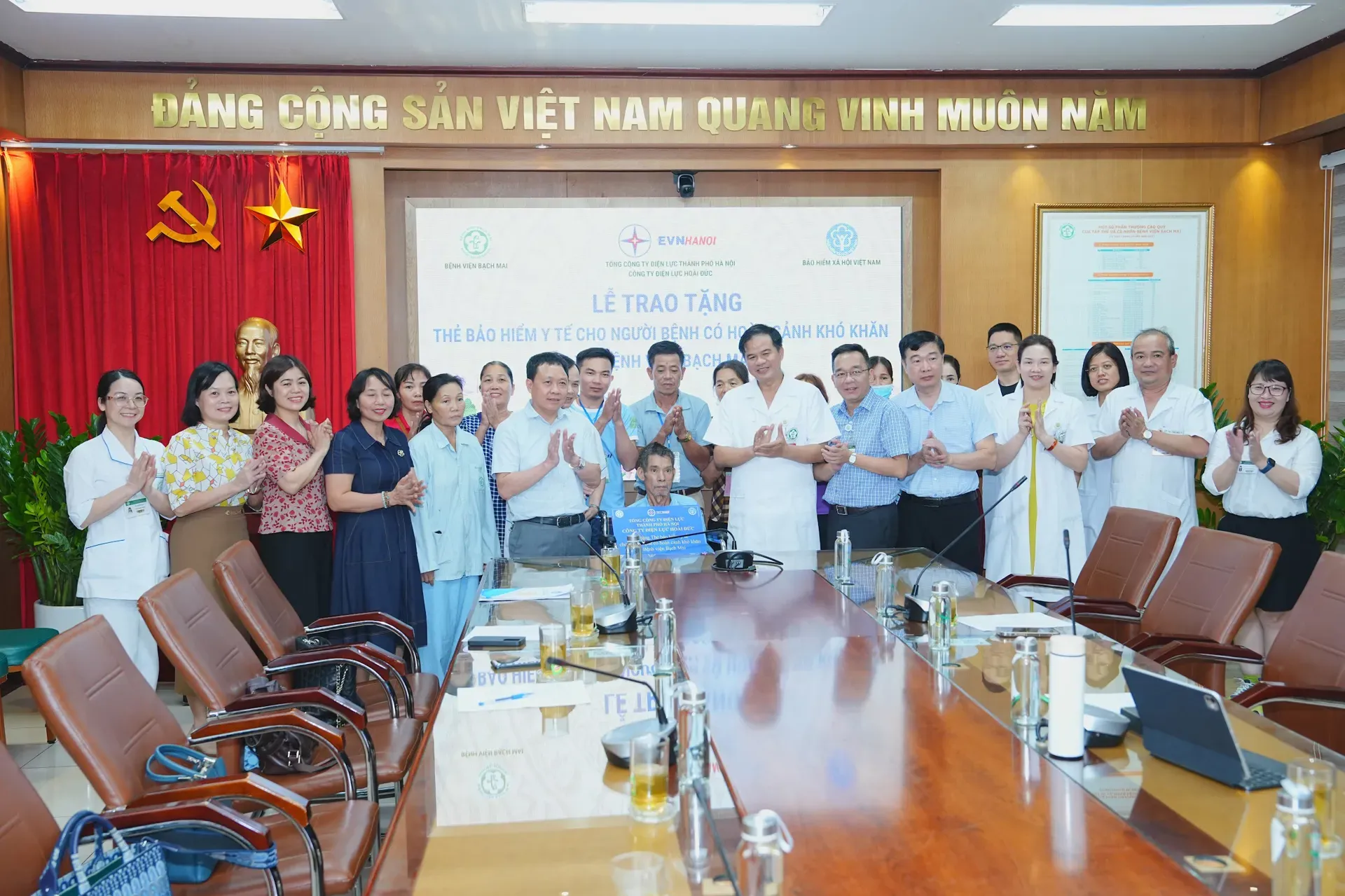 Bệnh viện Bạch Mai, BHXH Hà Nội và Công ty Điện lực Hoài Đức trao tặng thẻ BHYT cho gần 20 bệnh nhân có hoàn cảnh khó khăn trong năm 2025.