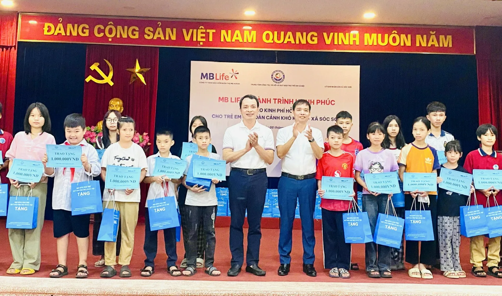 Tại chương trình, Công ty TNHH Bảo hiểm nhân thọ MB Ageas (gọi tắt là Công ty Bảo hiểm nhân thọ MB Life) đã trao tặng 200 suất hỗ trợ cho 200 trẻ em có hoàn cảnh khó khăn của hai xã Sóc Sơn và An Khánh, mỗi em nhận 1.000.000 đồng tiền mặt. Mỗi em còn được nhận 1 phần quà 450.000 đồng do Trung tâm Công tác xã hội và Quỹ Bảo trợ trẻ em Hà Nội trao tặng. Tổng kinh phí dành cho các em tại chương trình là 290.000.000 đồng.