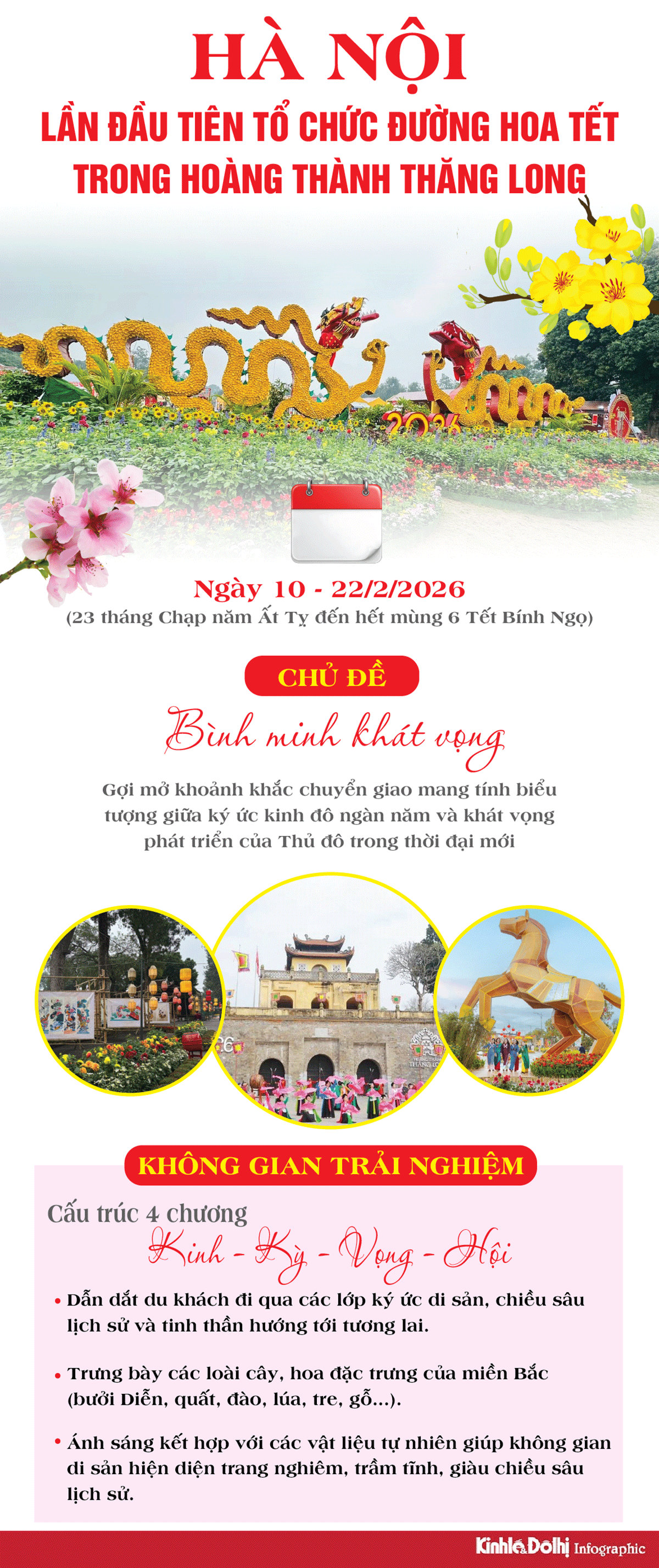 Kinhtedothi - Thủ đô Hà Nội ghi dấu một điểm nhấn đặc biệt trong chuỗi hoạt động văn hóa - đối ngoại khi lần đầu tiên Đường hoa Tết được tổ chức trong không gian Khu di sản văn hóa thế giới Hoàng thành Thăng Long.