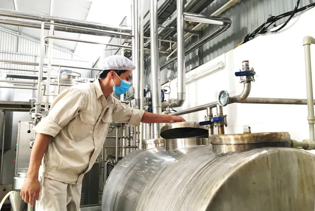 Giám sát quy trình sản xuất tại Hợp tác xã chế biến sữa bò Phù Đổng (huyện Gia Lâm). Ảnh: Trọng Tùng.