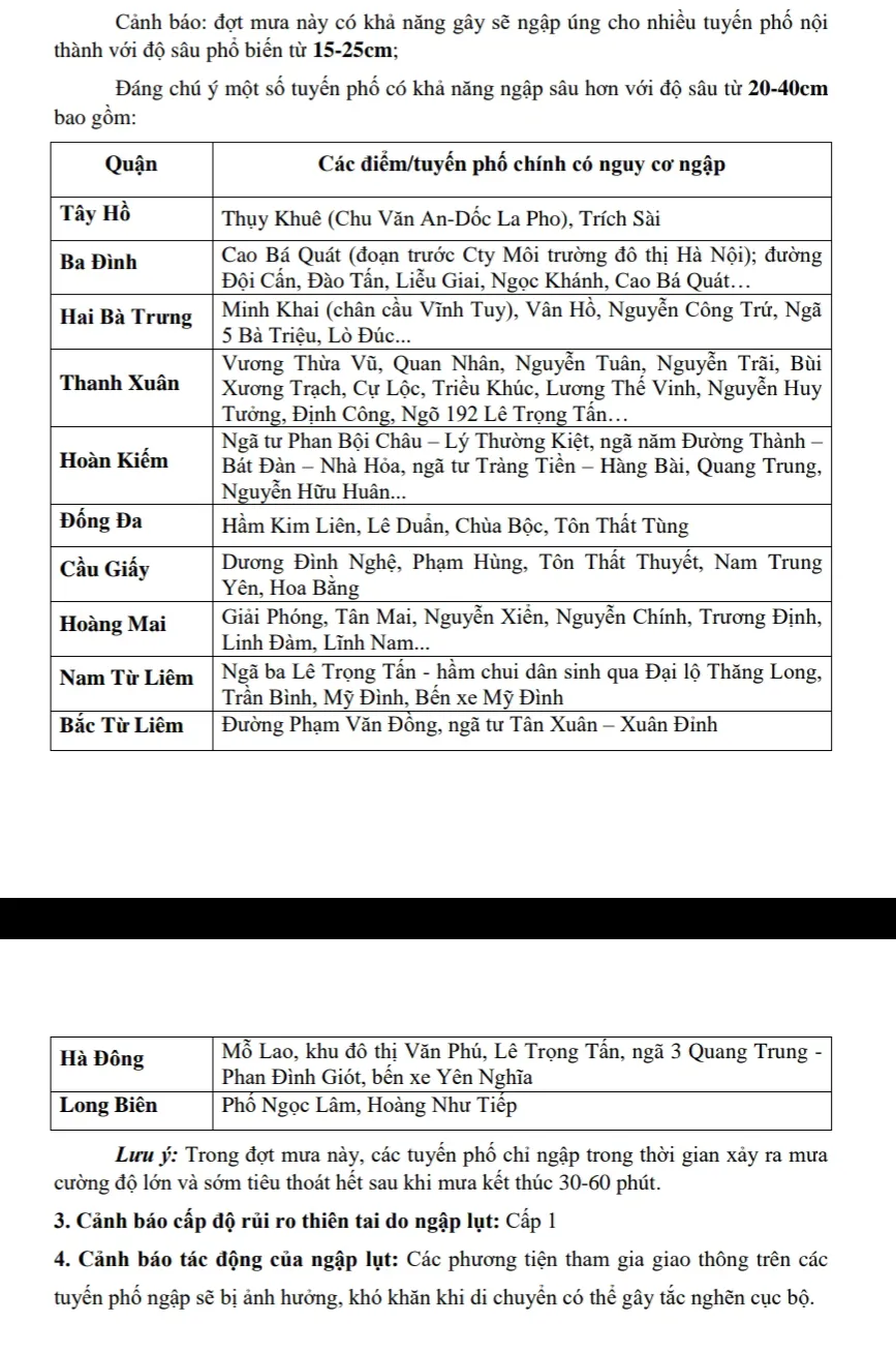 Trong 30 phút đến 3 giờ tới, những đám mây đối lưu này sẽ tiếp tục phát triển, gây mưa rào và dông cho các Quận/huyện kể trên, sau đó có khả năng mở rộng sang các khu vực nội thành của thành phố Hà Nội.