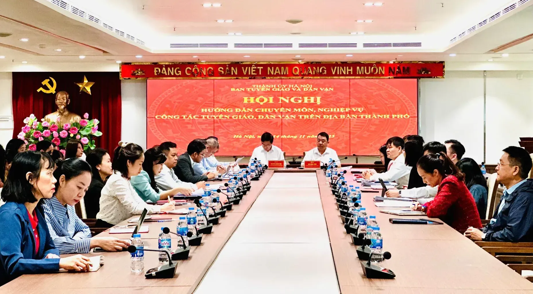 Kinhtedothi - Ngày 14/11, Ban Tuyên giáo và Dân vận Thành ủy Hà Nội tổ chức Hội nghị hướng dẫn chuyên môn, nghiệp vụ công tác tuyên giáo, dân vận trên địa bàn Thành phố, với hình thức trực tiếp kết hợp trực tuyến đến 126 xã, phường trên địa bàn TP.