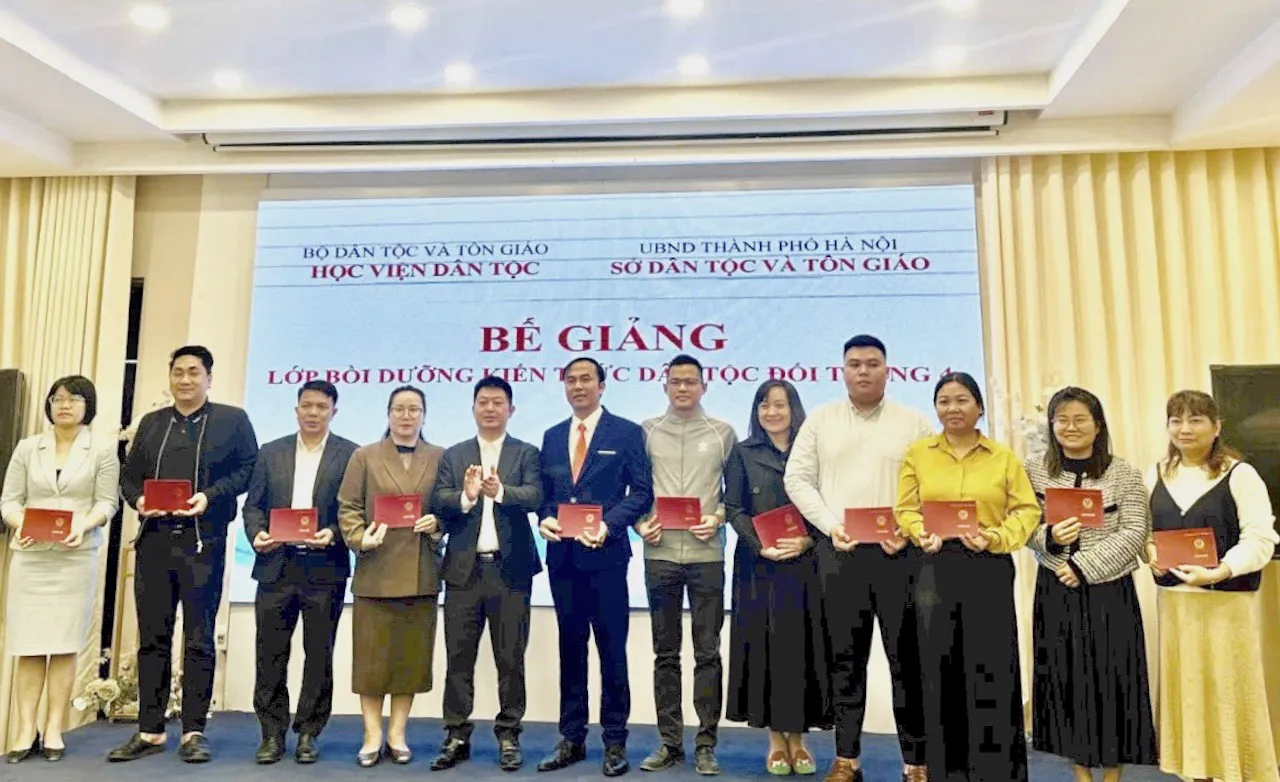 Phát biểu tại lễ bế giảng lớp bồi dưỡng, Phó Giám đốc Sở Dân tộc và Tôn giáo Hà Nội Bùi Duy Quang bày tỏ mong muốn, sau khi hoàn thành khóa bồi dưỡng, các học viên sẽ tiếp tục nghiên cứu, tìm hiểu thêm về tình hình dân tộc, công tác dân tộc, đặc biệt là vận dụng những kiến thức được trang bị vào thực tiễn, tham mưu giải quyết, xử lý hiệu quả các tình huống, các vấn đề phát sinh trên địa bàn.