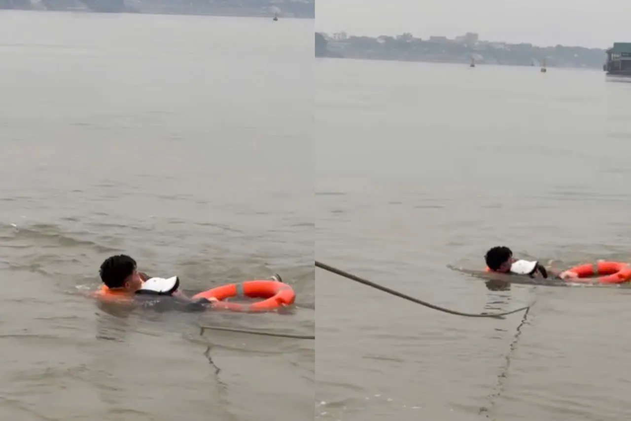 Thời điểm xảy ra sự việc trời Hà Nội rét với nền nhiệt ngoài trời khoảng 16 độ C. Tiếp cận hiện trường, chiến sỹ cảnh sát đã lao xuống sông đưa nạn nhân lên cano, đồng thời tổ chức sơ cấp cứu ban đầu và đưa vào Bệnh viện 108 cấp cứu.