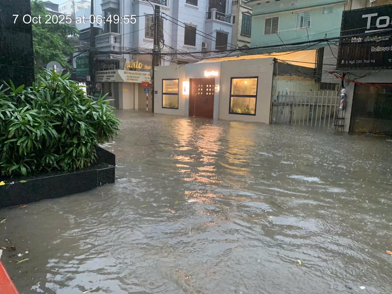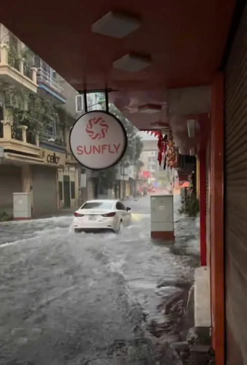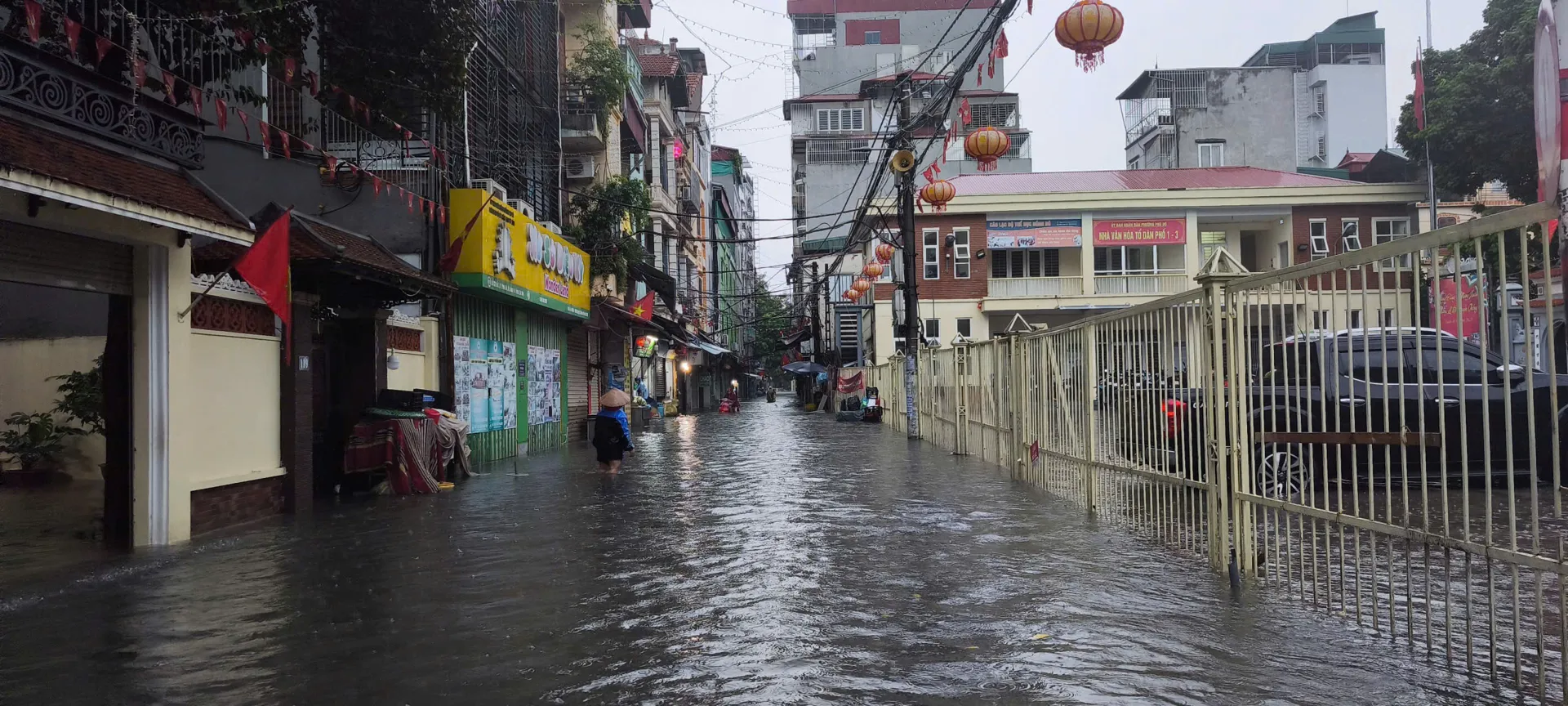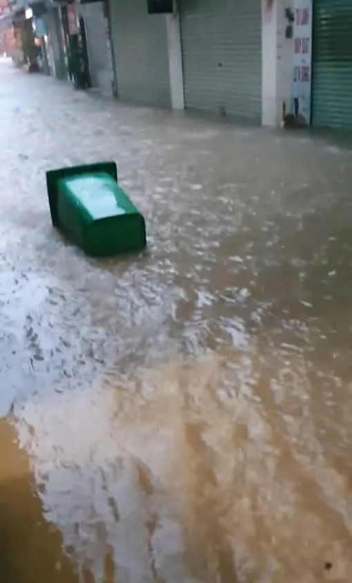 Phố Lâm Hạ, phường Bồ Đề ngập cục bộ sáng 7/10. Ảnh: CTV