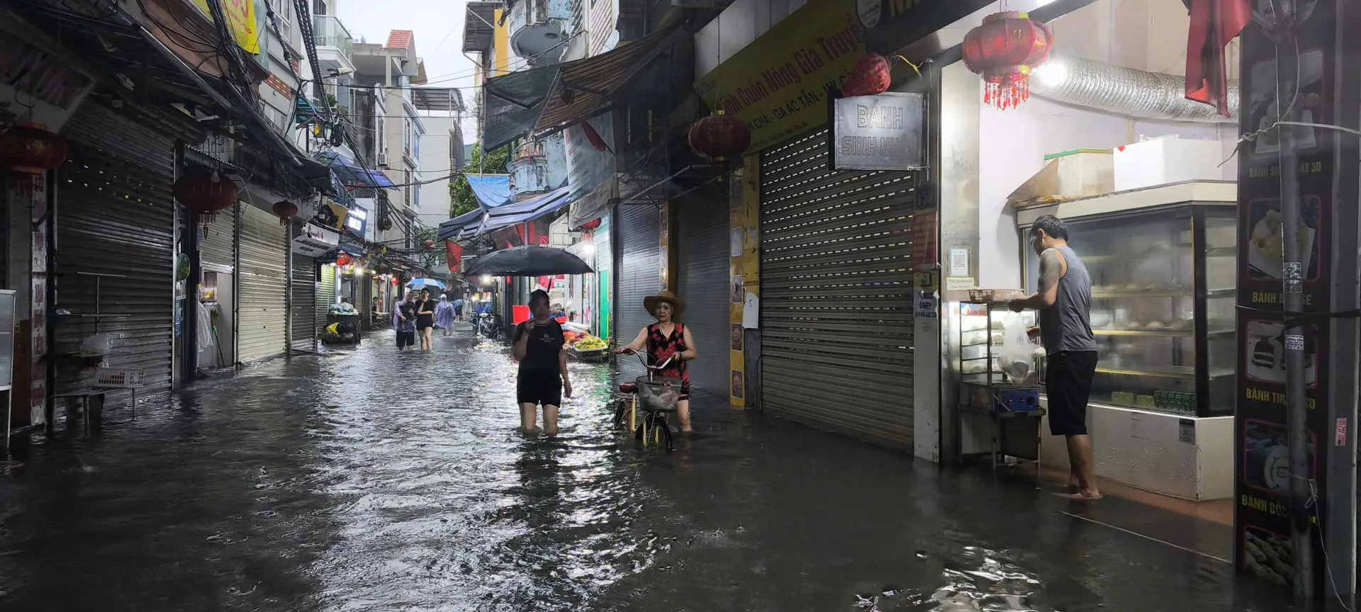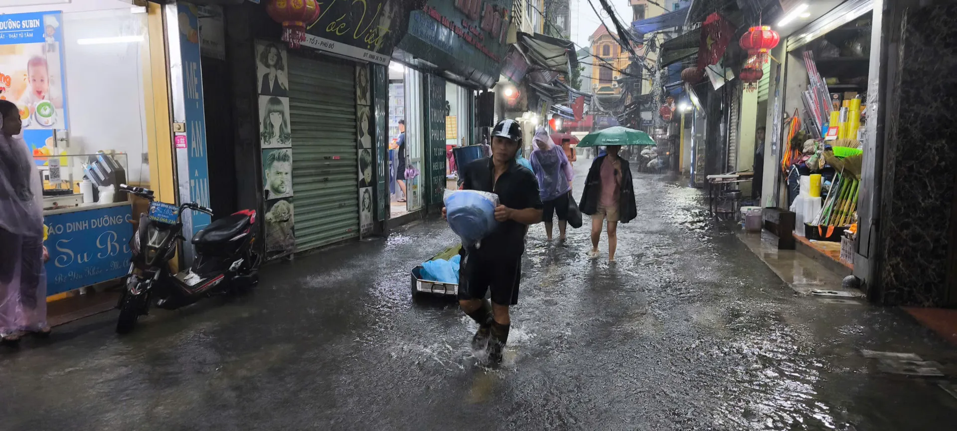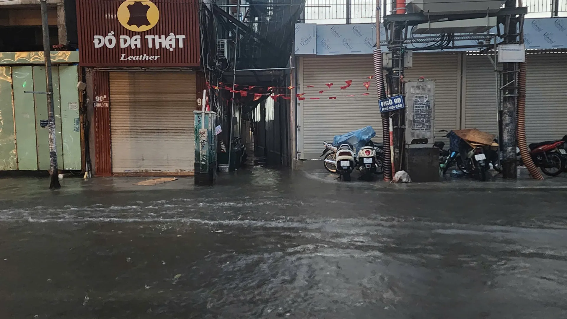 Phố Lâm Hạ, phường Bồ Đề ngập cục bộ sáng 7/10. Ảnh: CTV