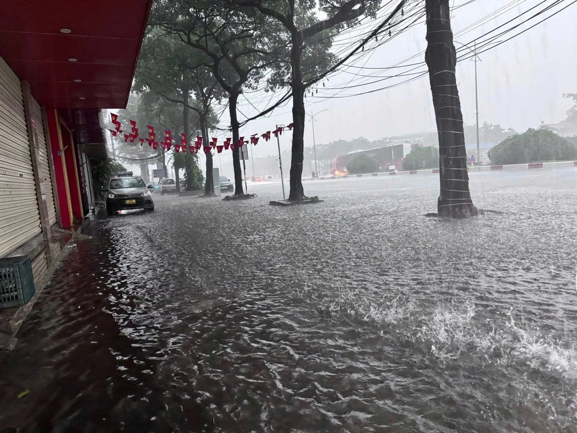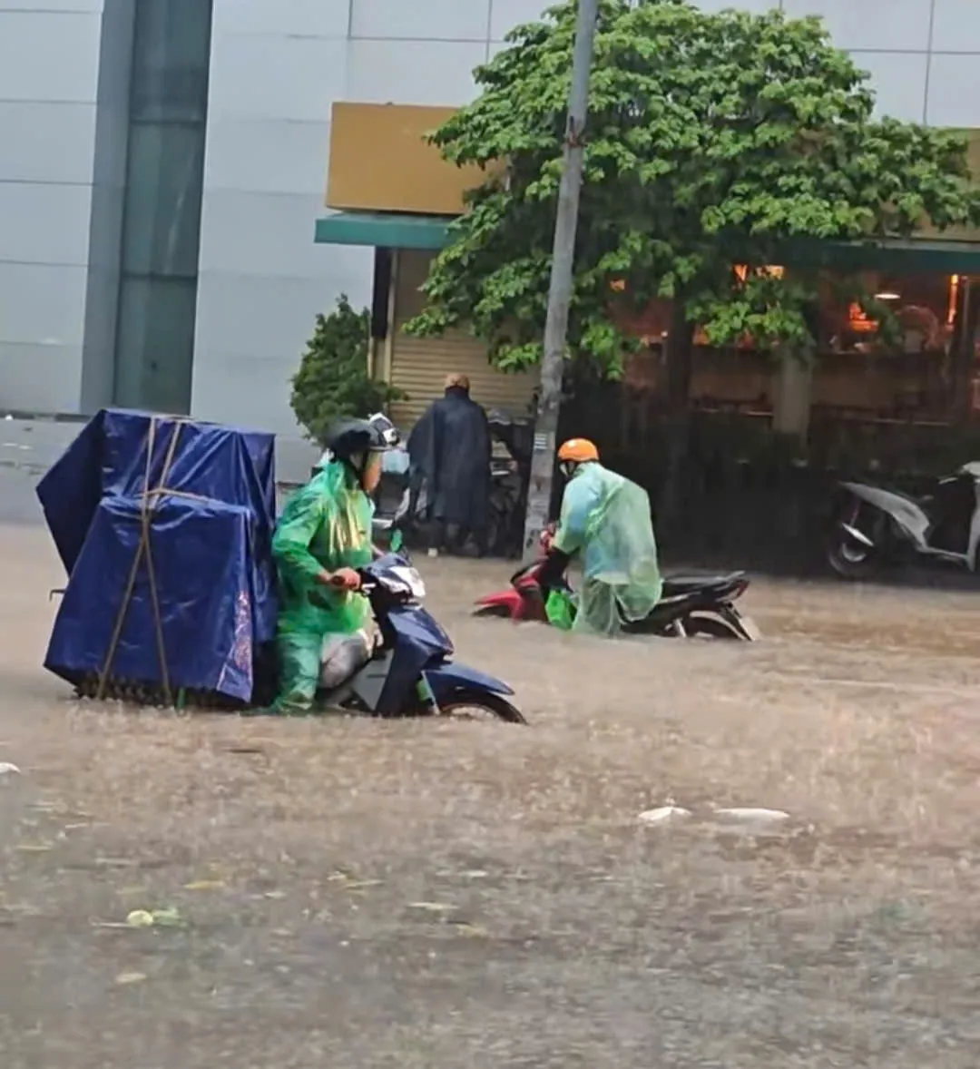 Mưa to từ đêm khiến nhiều tuyến đường ngập cục bộ. Ảnh: CTV
