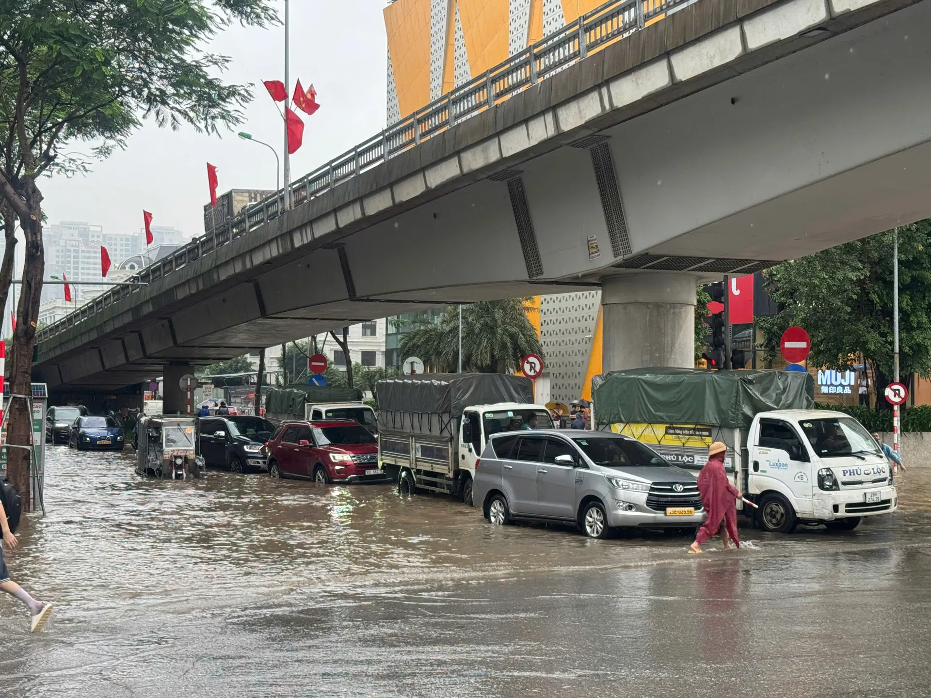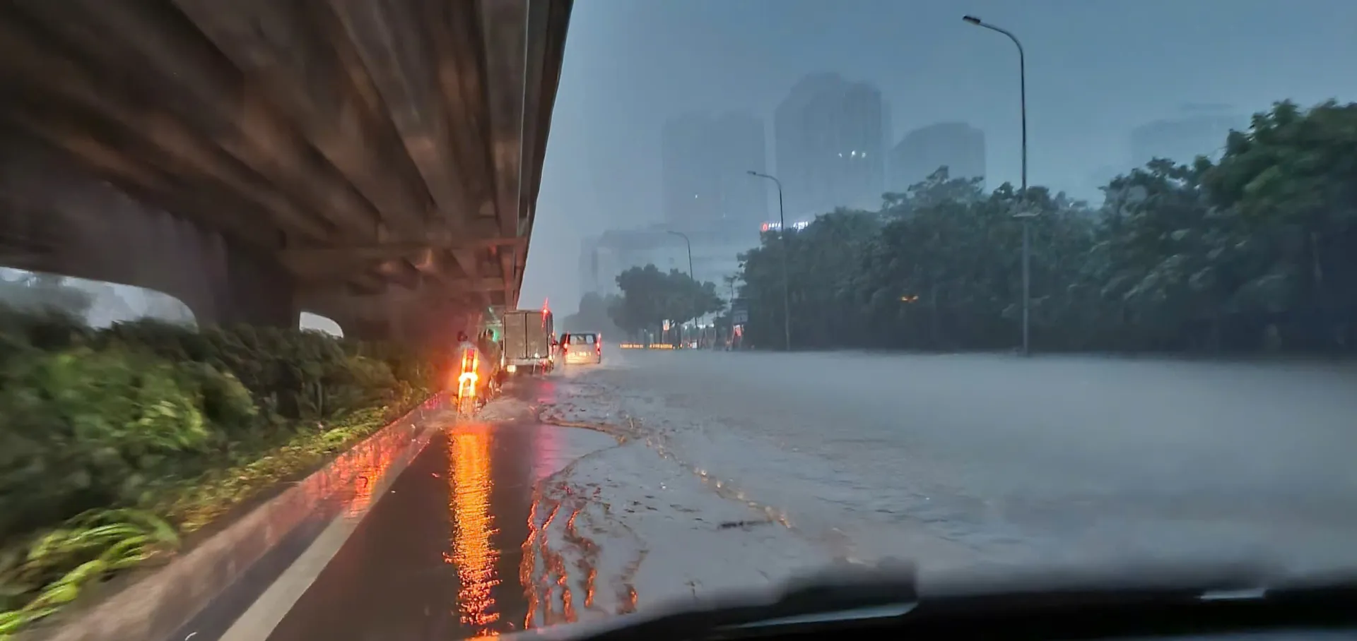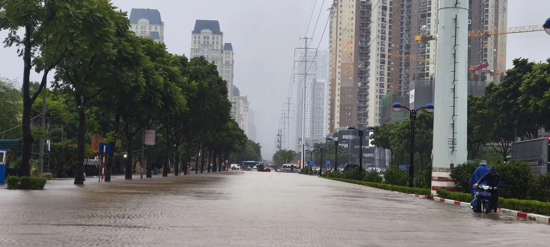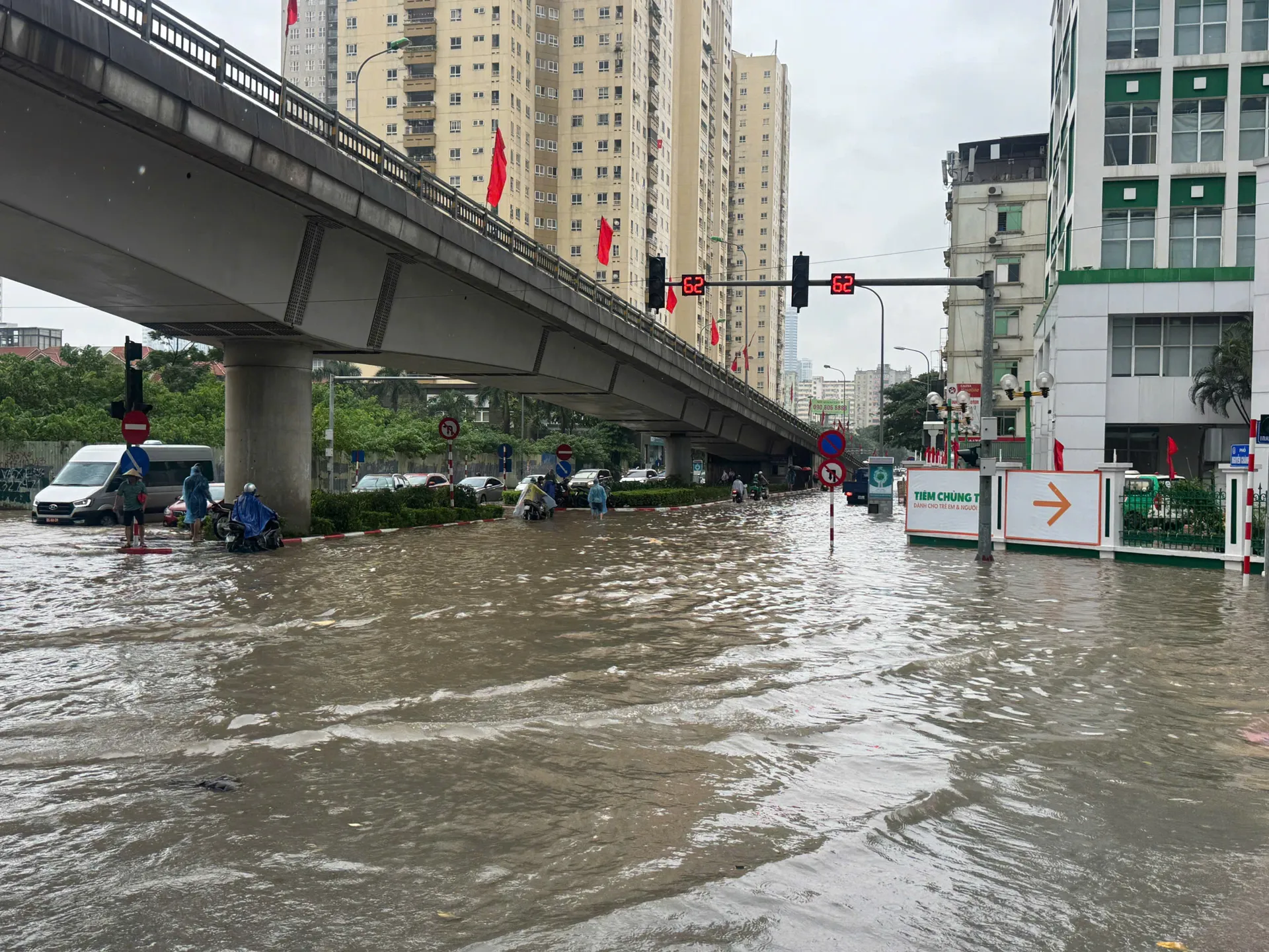 Tuyến phố ngập sâu kéo dài ở quang khu vực Mỹ Đình. Ảnh: Ngọc Tú