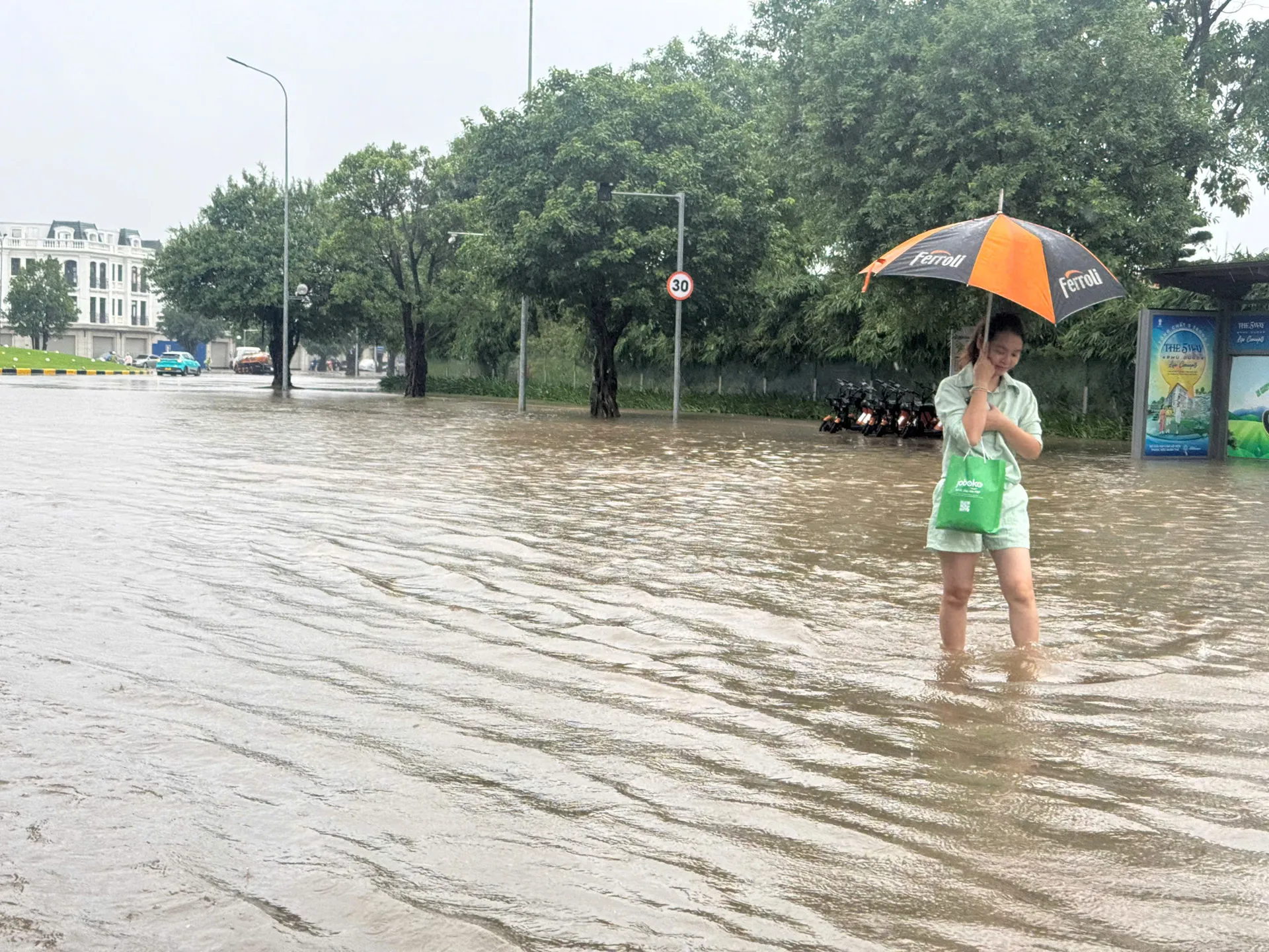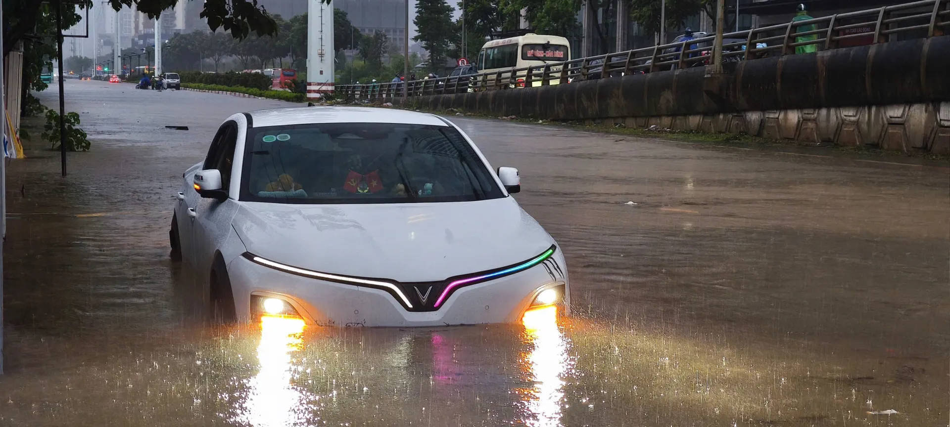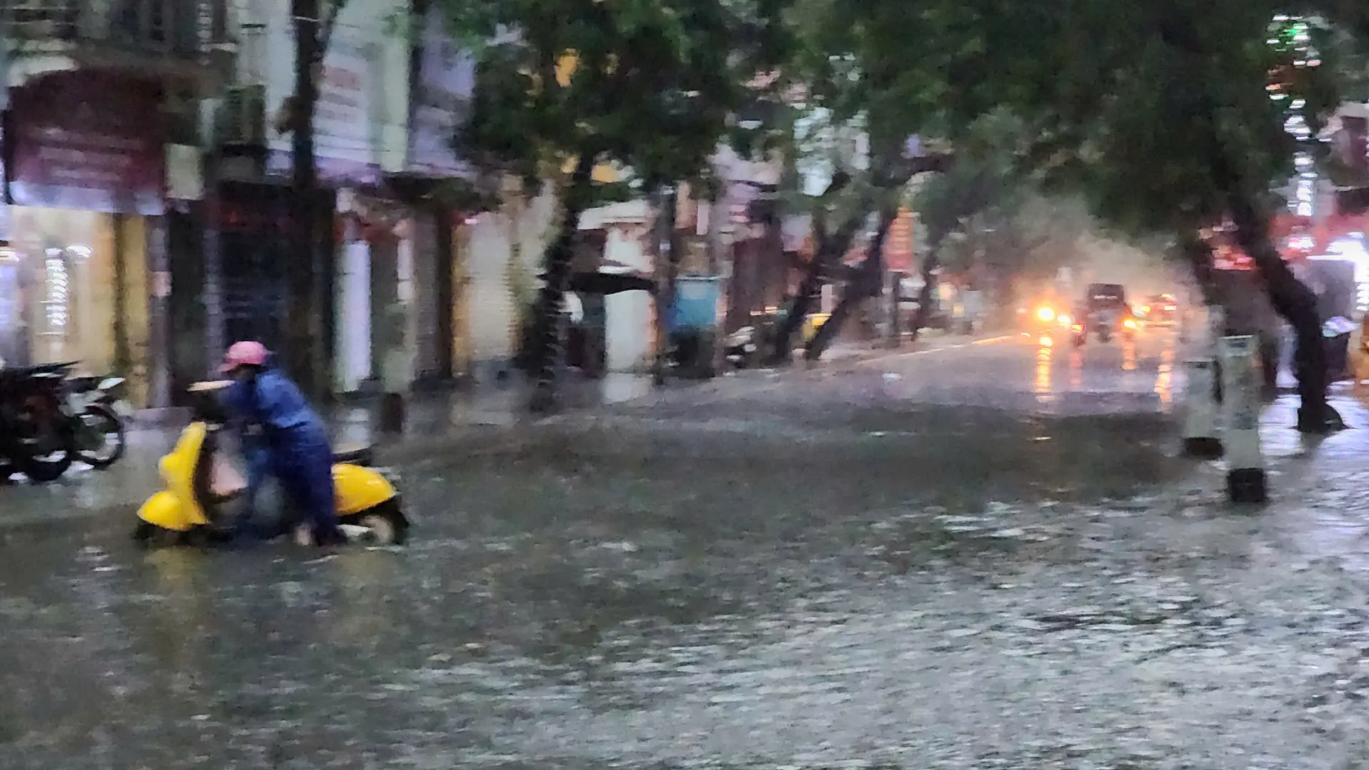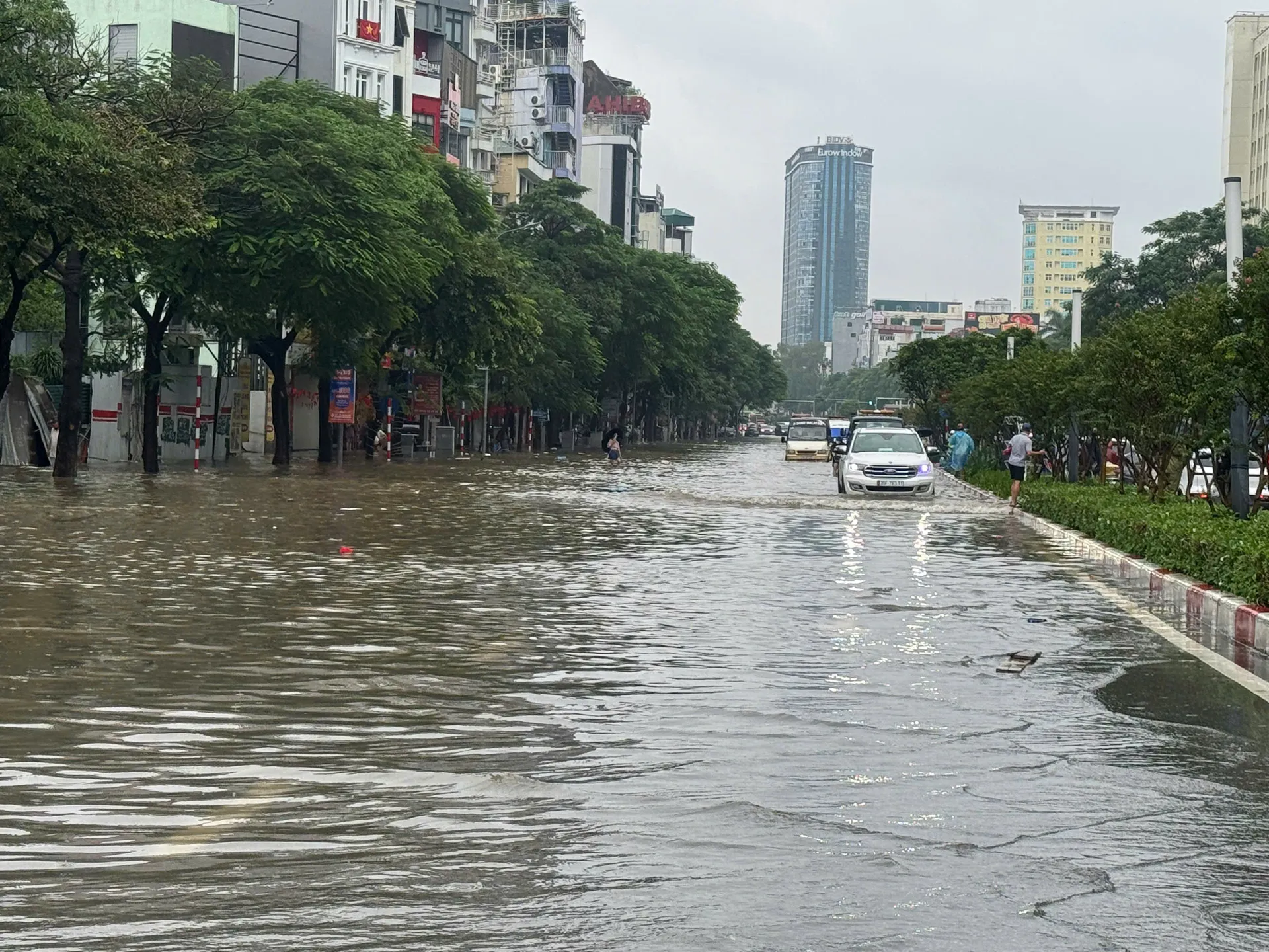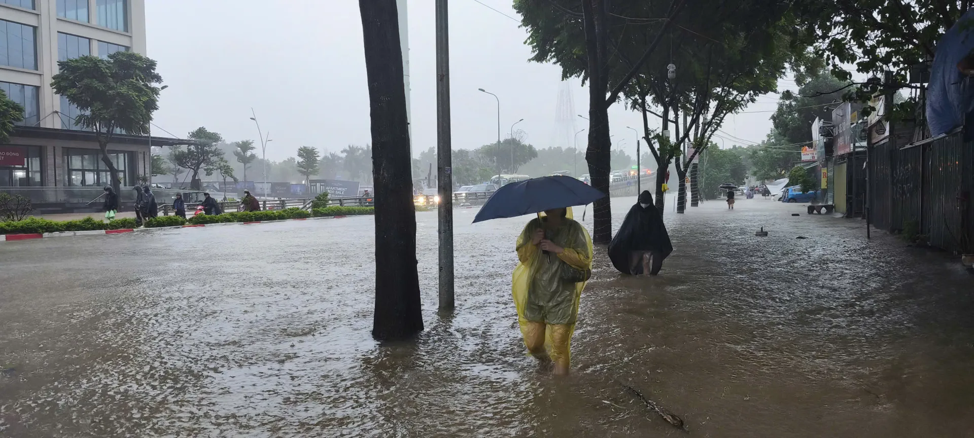 Tuyến phố ngập sâu kéo dài ở quang khu vực Mỹ Đình. Ảnh: Ngọc Tú