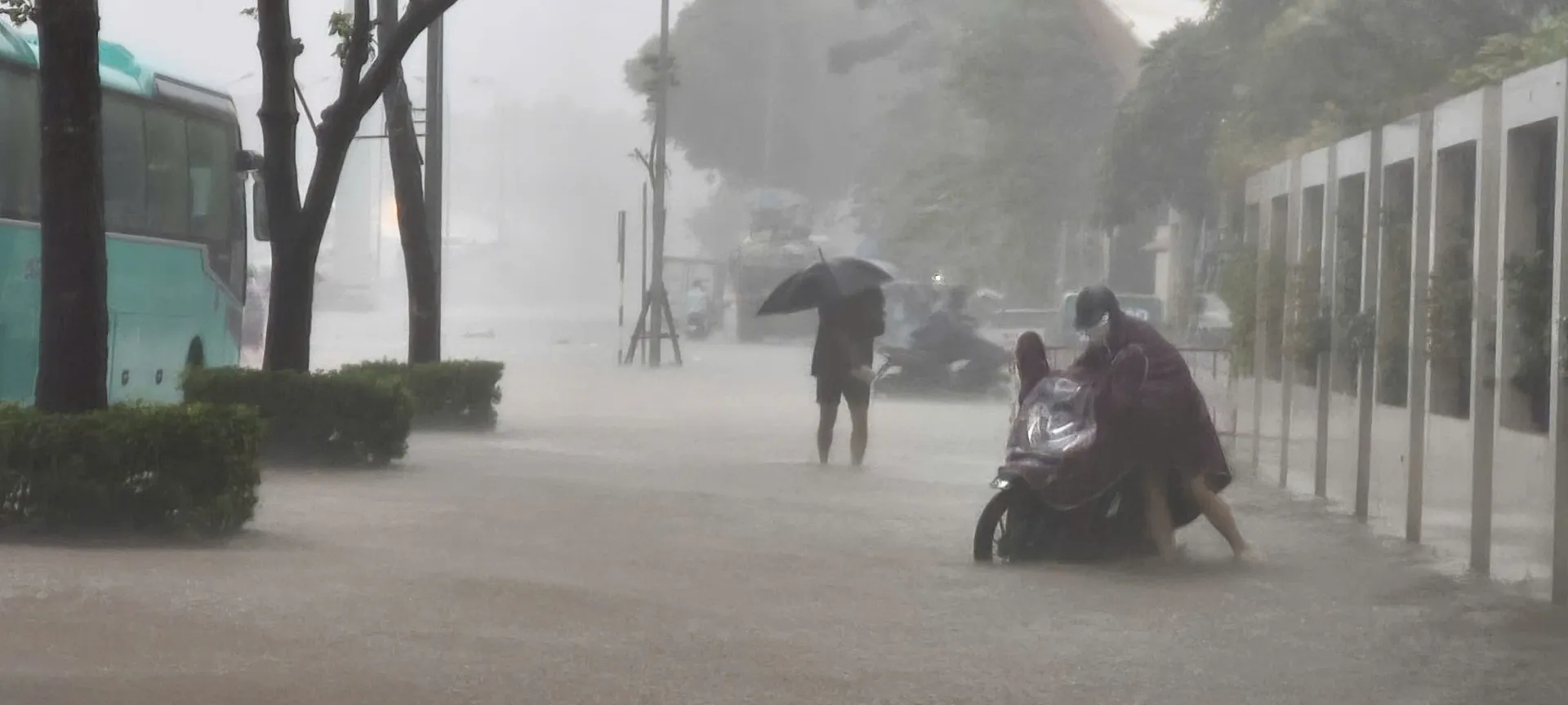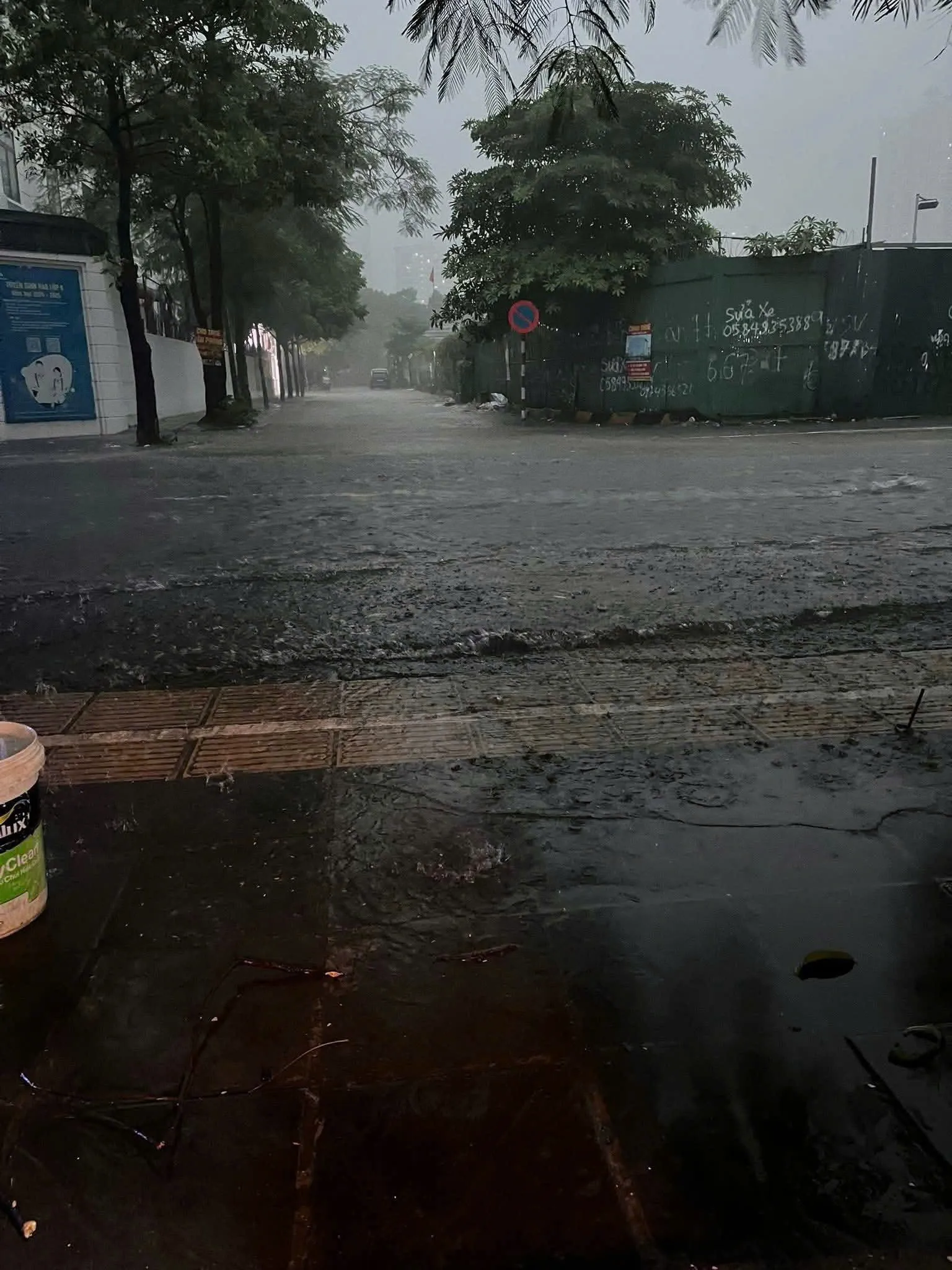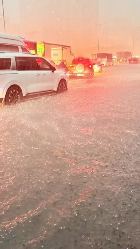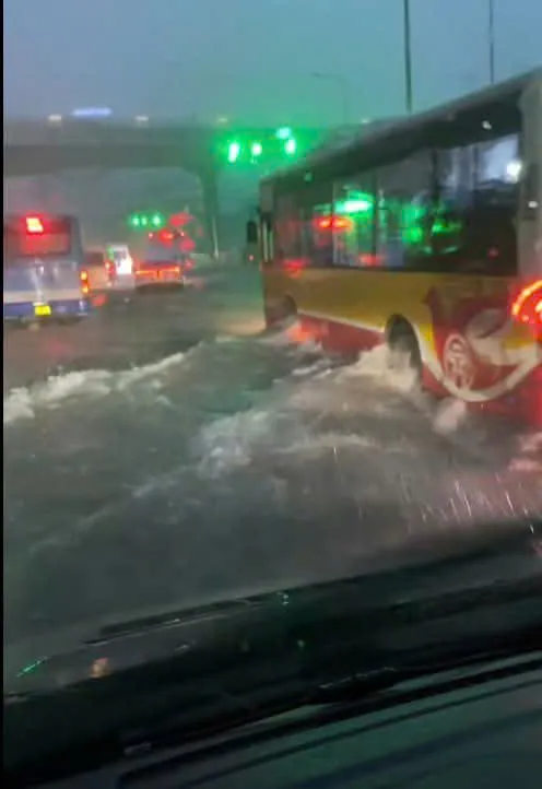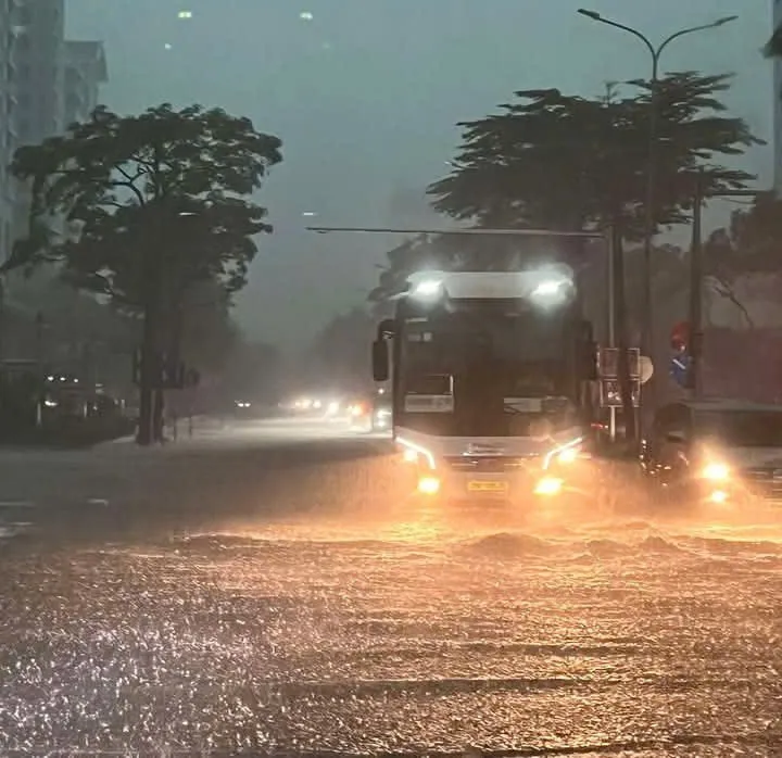 Trận mưa lớn vẫn chưa có dấu hiệu chấm dứt, sấm sét, dông lốc vẫn tiếp diễn. Khu vực Mỹ Đình ngập sáng 7/10/2025. Ảnh: CTV
