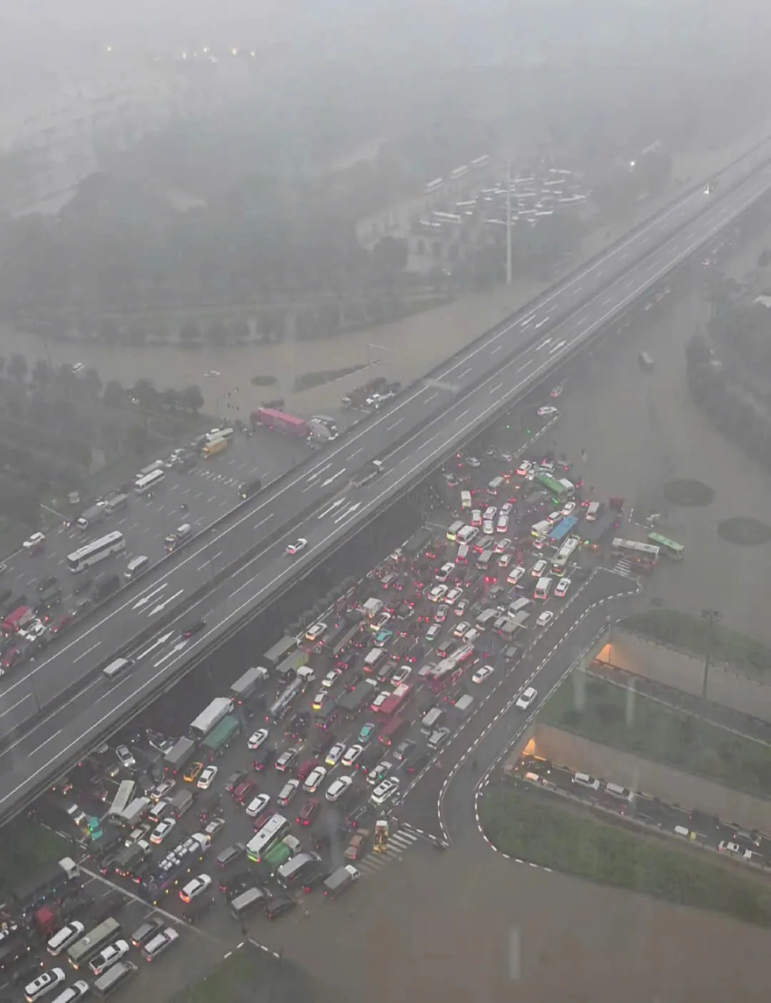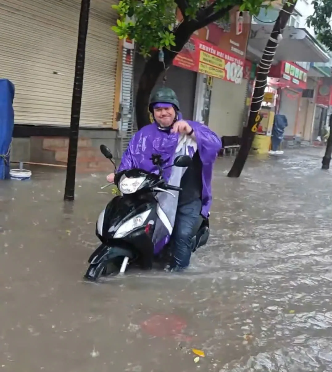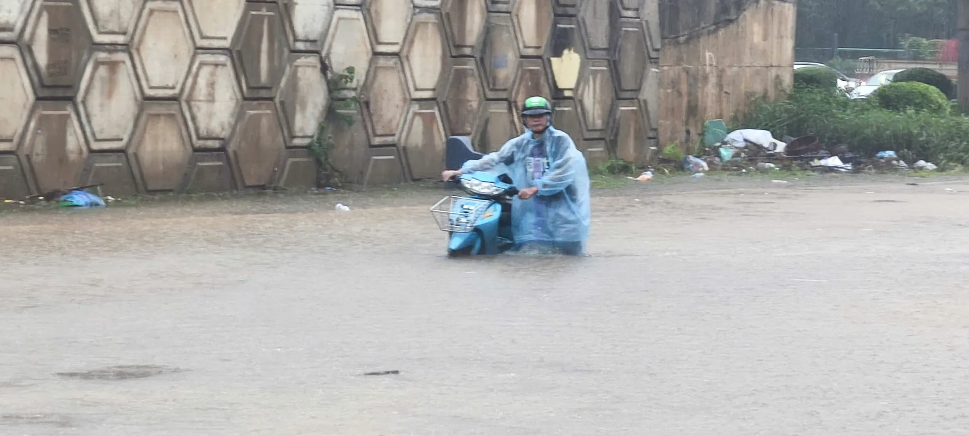 Trận mưa lớn vẫn chưa có dấu hiệu chấm dứt, sấm sét, dông lốc vẫn tiếp diễn. Khu vực Mỹ Đình ngập sáng 7/10/2025. Ảnh: CTV