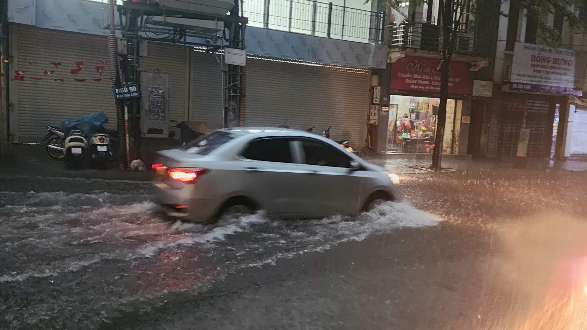 Phố Đội Cấn sáng 7/10 ngập cục bộ do mưa lớn. Ảnh: CTV