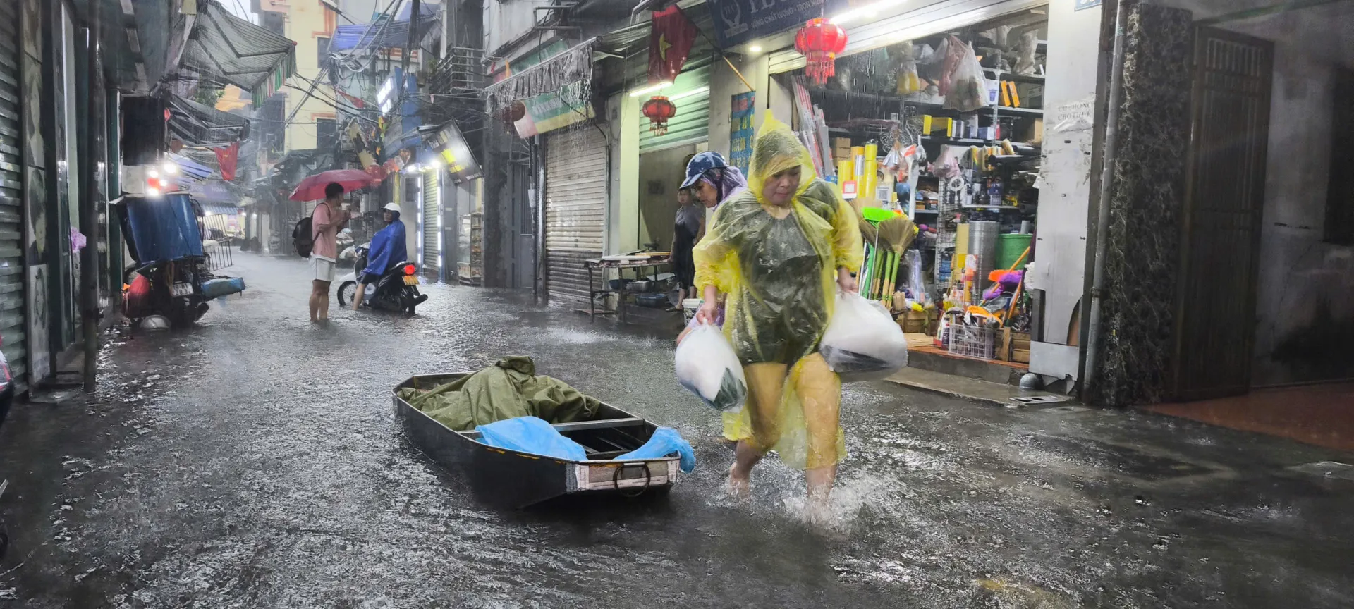 Một số người đã sử dụng thuyền để di chuyển. Ảnh: Ngọc Tú