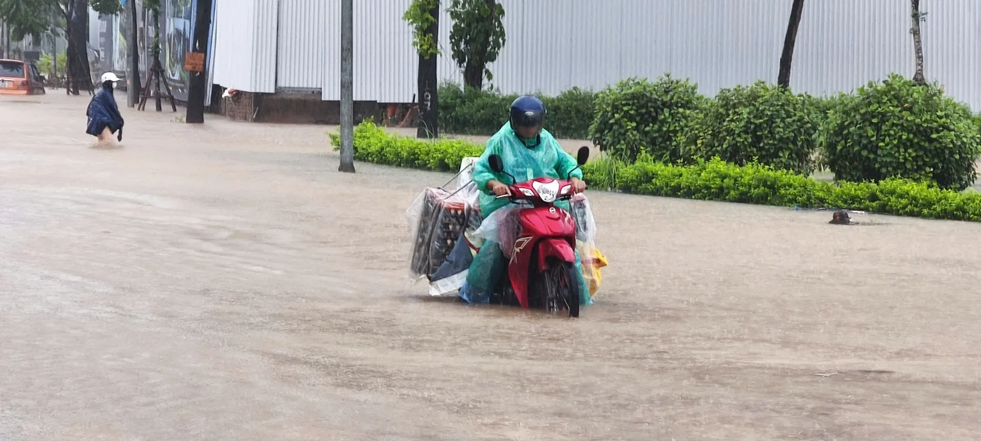 Đại lộ Thăng Long - Khuất Duy Tiến ngập. Ảnh: CTV