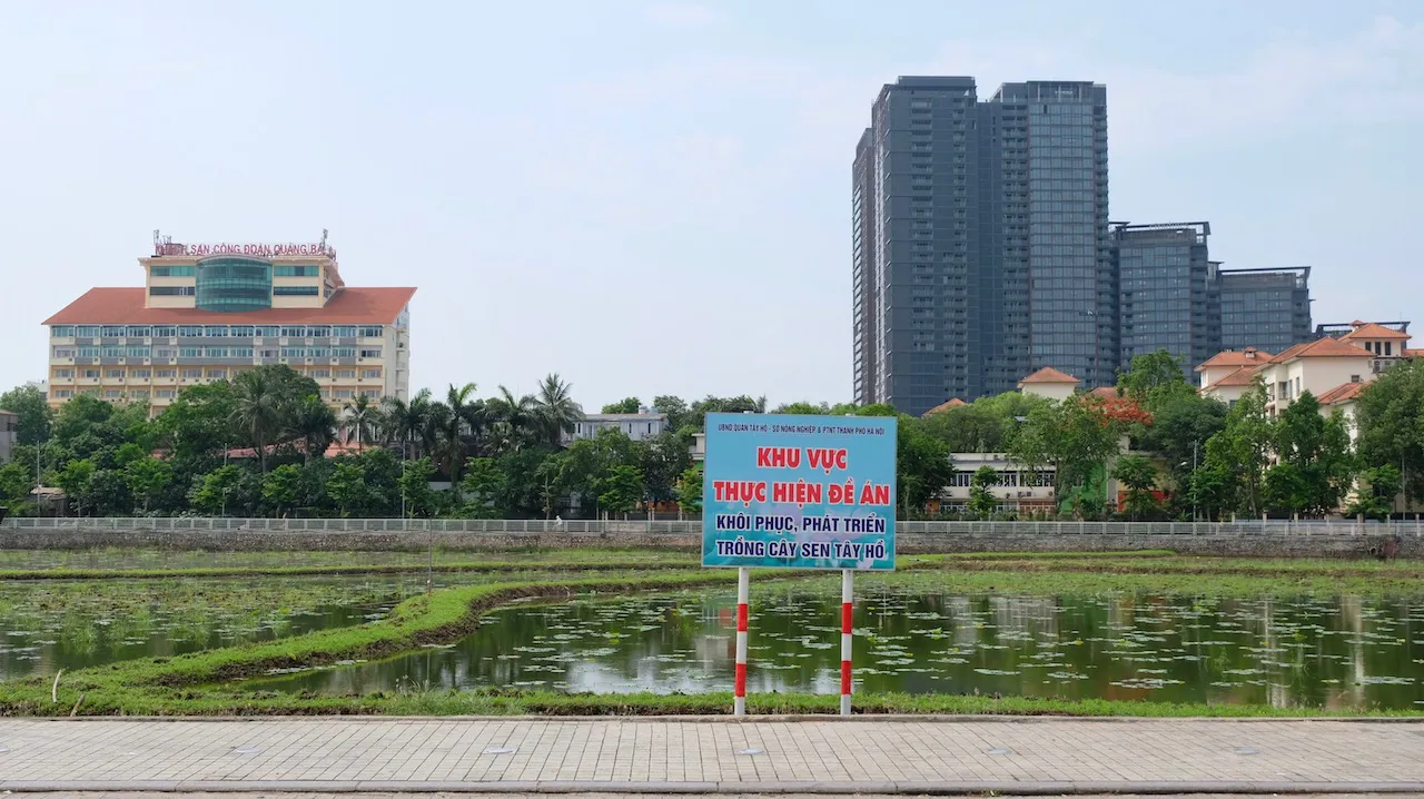 Sau quá trình khảo sát, UBND quận Tây Hồ đã lựa chọn 2 hồ Đầu Đồng và Thuỷ Sứ (trên) thuộc phường Quảng An để triển khai đề án “Khôi phục, phát triển trồng cây sen trên một số hồ nhỏ xung quanh khu vực Hồ Tây”. Tổng diện tích trồng sen khoảng 7ha.