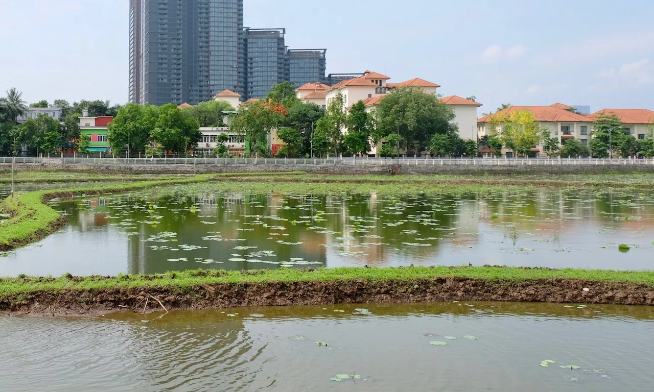 Về phía quận Tây Hồ, đại diện Phòng Kinh tế quận cho biết hiện đang tiếp tục theo dõi chất lượng nguồn nước tại hai hồ trồng sen, nhất là hồ Thuỷ Sứ (trên). Việc xử lý nước thải ra hai hồ này được thực hiện thường xuyên, dù thực tế gặp khá nhiều khó khăn để có thể khắc phục ô nhiễm triệt để, đặc biệt là khi trời mưa to.
