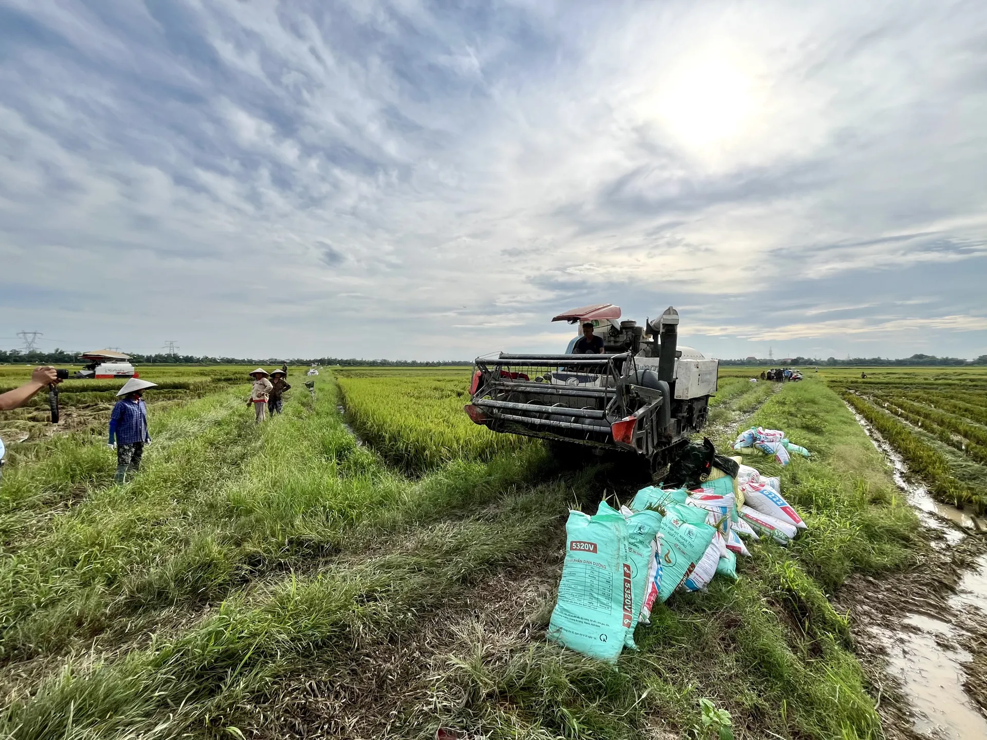 Tính đến ngày 3/10, tổng diện tích lúa đã gặt đạt khoảng 35.000ha, bằng hơn 50% tổng diện tích lúa Mùa 2025. Trong số này, có khoảng 2.200ha lúa nếp cái hoa vàng đang giai đoạn làm đòng, trỗ.