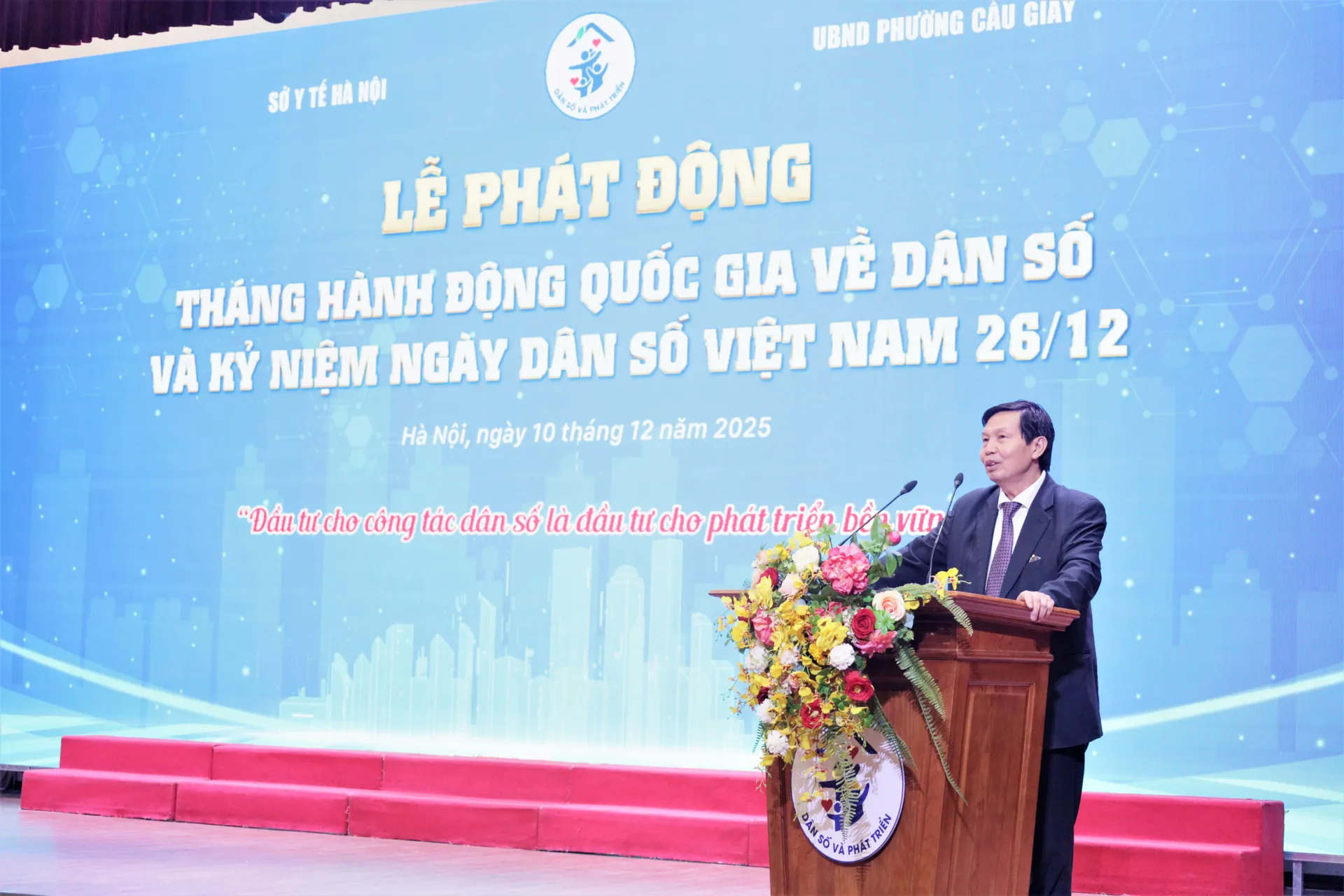 Kinhtedothi - Ngày 10/12, Sở Y tế Hà Nội tổ chức Lễ phát động, cổ động hưởng ứng Tháng hành động quốc gia về dân số và kỷ niệm Ngày Dân số Việt Nam 26/12/2025 với chủ đề “Đầu tư cho công tác dân số là đầu tư cho phát triển bền vững”. Tới dự có Phó Cục trưởng Cục Dân số, Bộ Y tế Hoàng Thị Thơm.