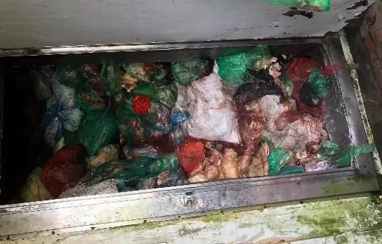 Trong kho đông lạnh này, lực lượng chức năng phát hiện nhiều sản phẩm động vật gồm chân trâu bò đã mốc xanh, bốc mùi hôi thối mất vệ sinh an toàn thực phẩm. Thời điểm kiểm tra, cơ sở không xuất trình được giấy phép kinh doanh, không giấy tờ liên quan đến nguồn gốc số hàng và không giấy chứng nhận đủ điều kiện VSATTP.