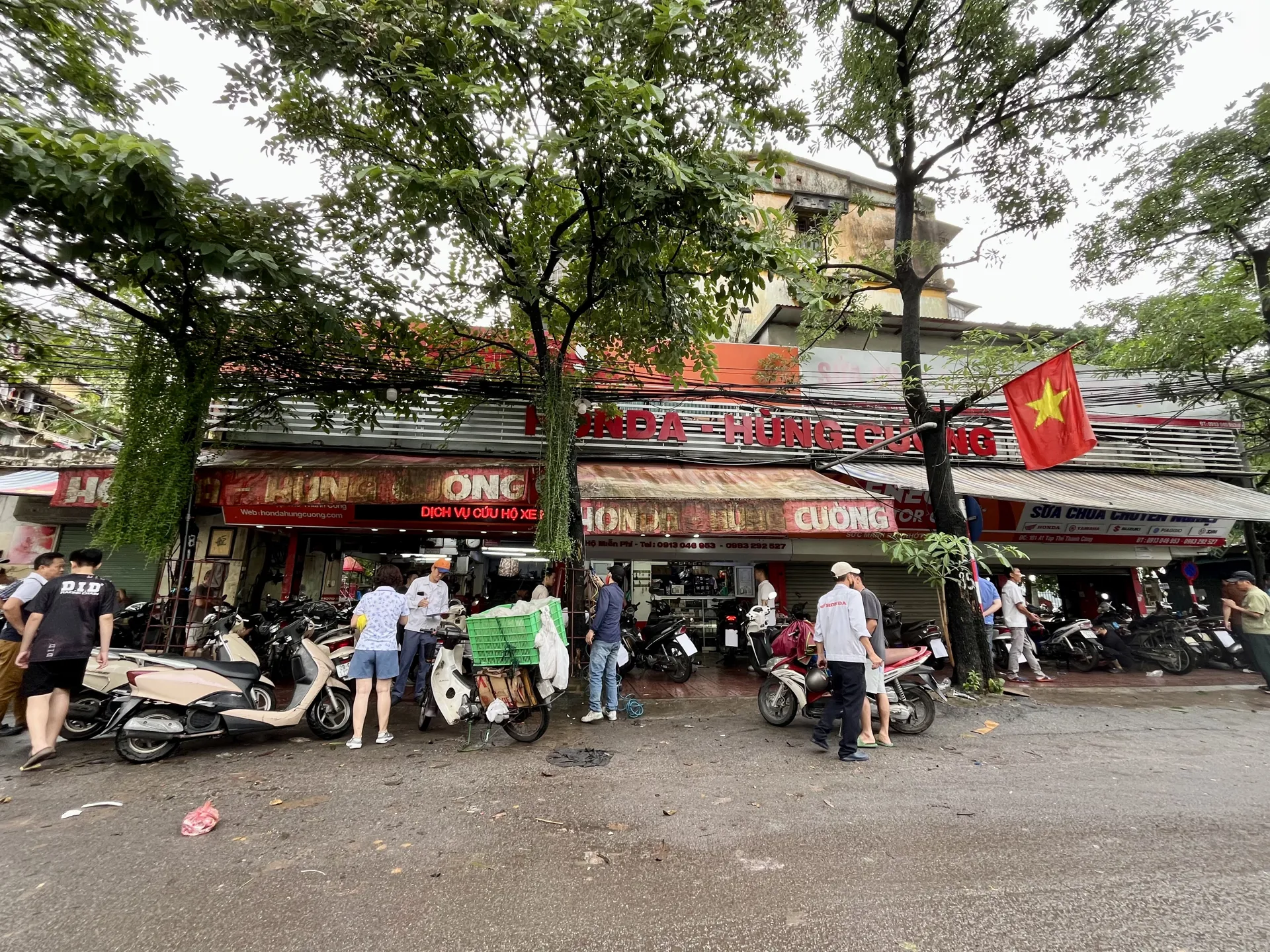 Các cửa hàng sửa chữa xe máy đông đúc khách chờ vào sáng 1/10/2025.