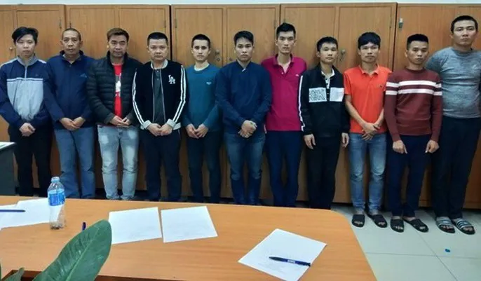 Nguyễn Hải Trường (SN 1983; trú tại Nghĩa Bình, Nghĩa Đàn, Nghệ An), Nông Đình Cừ (SN 1997; trú tại Điềm Mặc, Định Hóa, Thái Nguyên), Trần Văn Tuyến (SN 1981; trú tại Xuân Phương, Nam Từ Liêm, Hà Nội), Nguyễn Thế Hòa (SN 1984; trú tại Ninh Thắng, Hoa Lư, Ninh Bình), Hoàng Đức Quỳnh (SN 1989; trú tại Quỳnh Hồng, Quỳnh Lưu, Nghệ An).