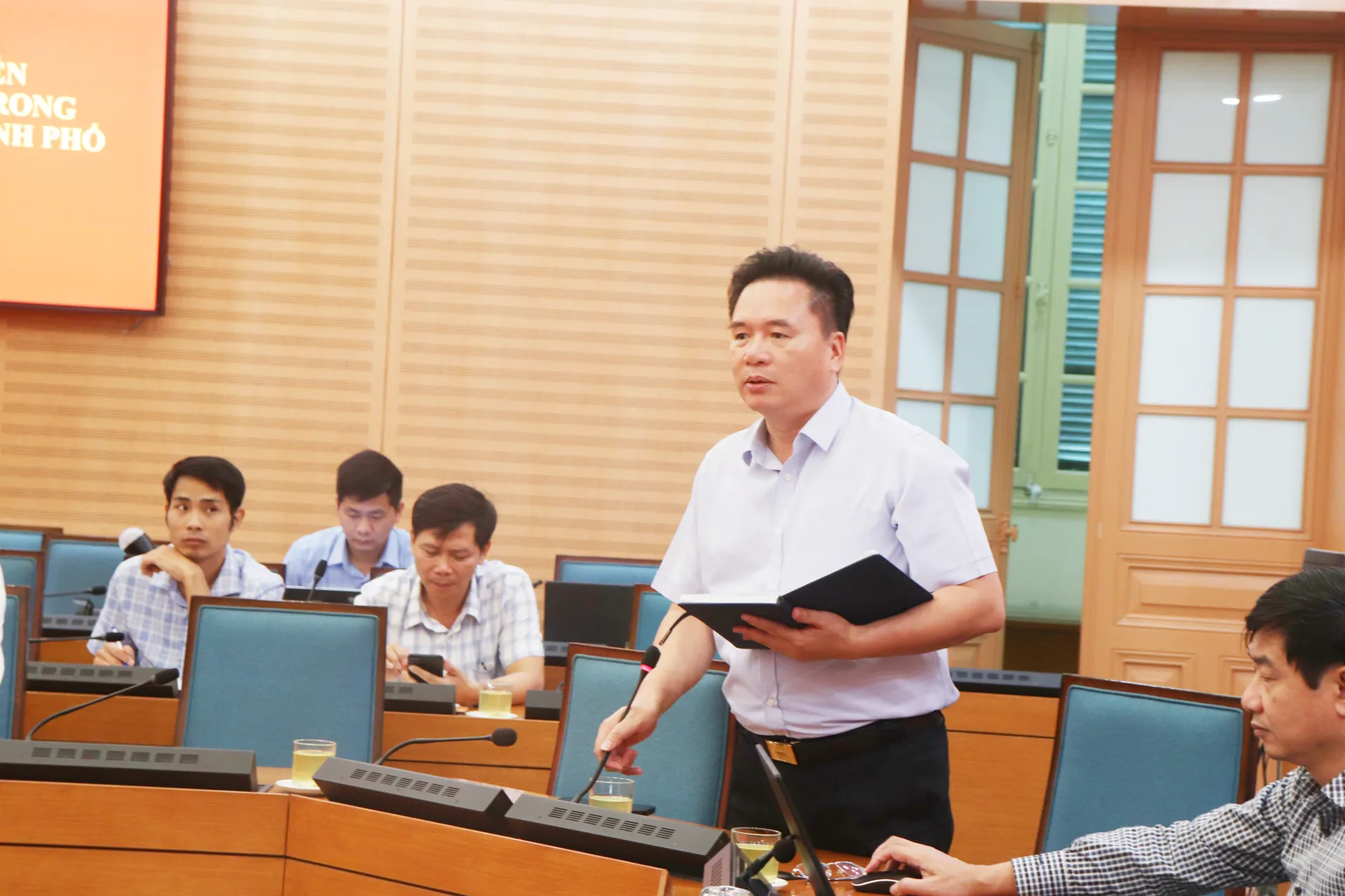 Phó Giám đốc phụ trách Sở Y tế Hà Nội Nguyễn Đình Hưng nêu ý kiến tại hội nghị.