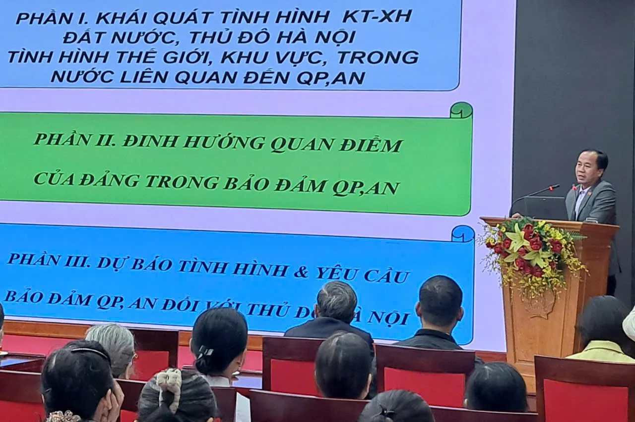 Tại Hội nghị, trong phần thông tin chuyên đề, TS Nguyễn Anh Tuấn - Viện Xây dựng Đảng (Học viện Chính trị Quốc gia Hồ Chí Minh) đã cung cấp bức tranh tổng quan về tình hình KT-XH, QP-AN của Thủ đô và cả nước trong thời gian qua; định hướng, quan điểm của Đảng trong bảo đảm QP-AN. Đồng thời, dự báo tình hình, phân tích một số yêu cầu đặt ra trong thực hiện nhiệm vụ bảo đảm QP-AN đối với Thủ đô Hà Nội trong bối cảnh mới.