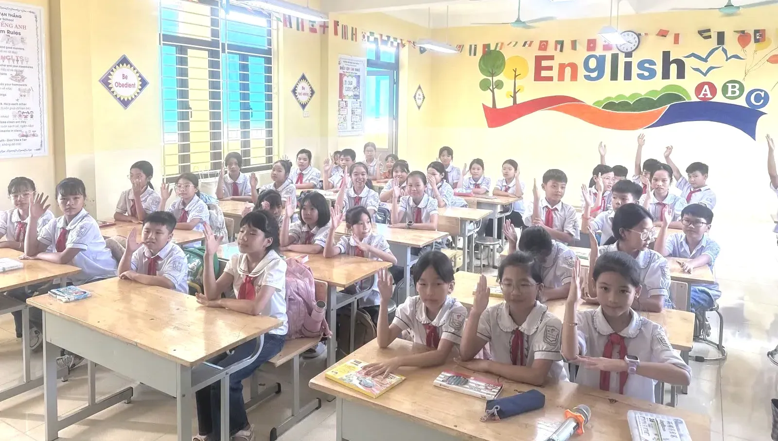 Học sinh Trường Tiểu học Vạn Thắng, xã Cổ Đô hào hứng với các tiết học tiếng Anh.