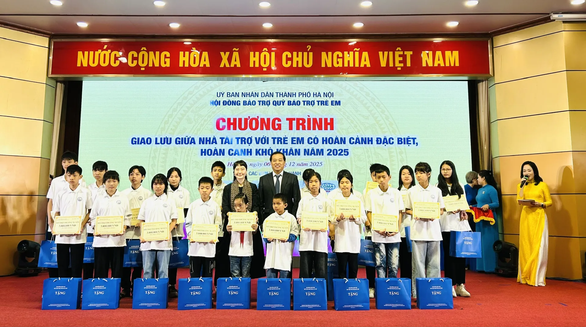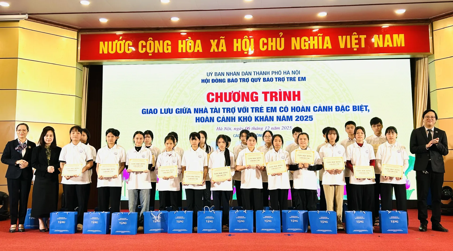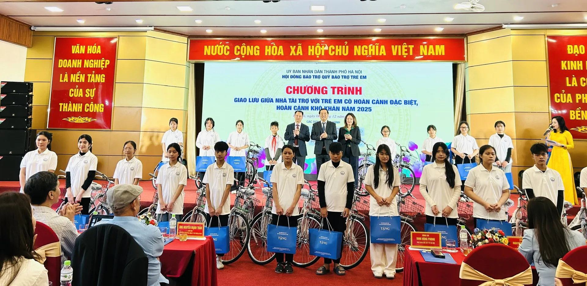 Tại Chương trình Giao lưu giữa nhà tài trợ với trẻ em có hoàn cảnh đặc biệt, hoàn cảnh khó khăn năm 2025, Ban tổ chức tặng kinh phí hỗ trợ, học bổng, xe đạp và quà tặng cho 200 trẻ em có hoàn cảnh đặc biệt, hoàn cảnh khó khăn. Cụ thể, Ban tổ chức trao tặng 130 suất hỗ trợ thường xuyên của Quỹ Thiện Tâm cho 130 em, với tổng số tiền 395.100.000 đồng. Ban tổ chức tặng 50 suất học bổng (mỗi suất trị giá 2 triệu đồng), 20 xe đạp cho 70 em, với tổng số tiền là 140.000.000 đồng. Ngoài ra, mỗi trẻ em tham gia chương trình được tặng 1 suất quà trị giá 1.000.000 đồng. Tổng kinh phí trao tặng tại Chương trình Giao lưu giữa nhà tài trợ với trẻ em có hoàn cảnh đặc biệt, hoàn cảnh khó khăn năm 2025 là: 735.100.000 đồng.