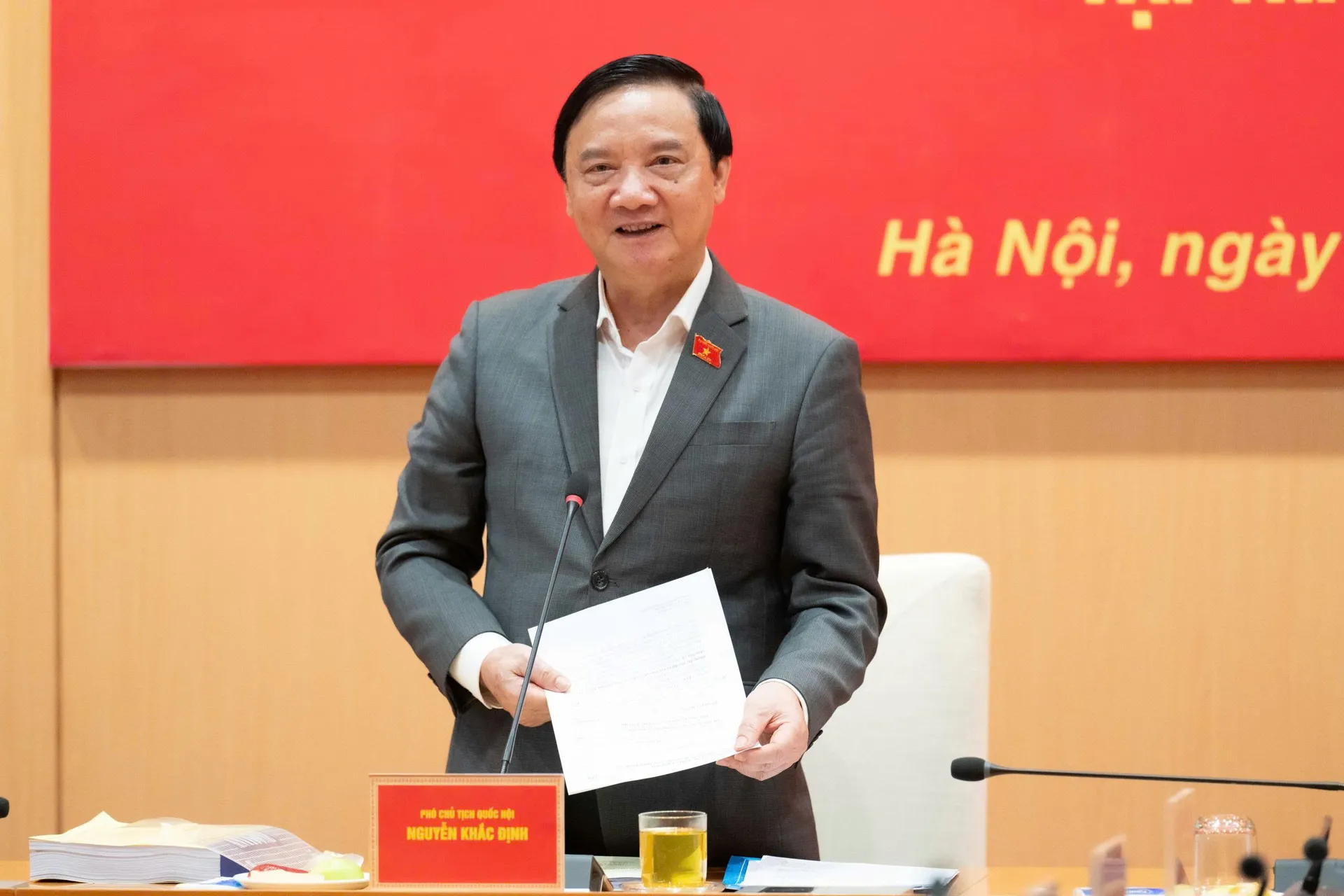 Phó Chủ tịch Quốc hội Nguyễn Khắc Định bày tỏ tin tưởng với truyền thống đoàn kết, trí tuệ, trách nhiệm của lãnh đạo thành phố, cuộc bầu cử Quốc hội khóa XVI và đại biểu Hội đồng nhân dân các cấp nhiệm kỳ 2026 - 2031 tại thành phố Hà Nội sẽ thành công rực rỡ, trở thành địa phương tiêu biểu của cả nước.