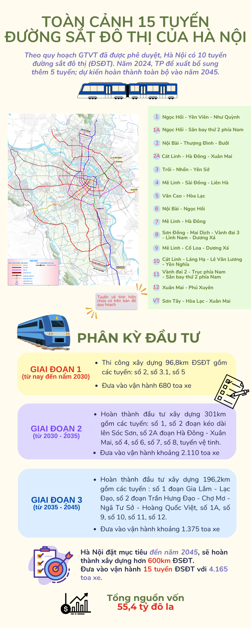 Theo các chuyên gia Hiệp hội Chuyển đổi xanh Việt Nam, muốn có “Hà Nội xanh” lời giải đầu tiên nằm ở việc phá thế độc tôn của xe cá nhân. Theo quy hoạch GTVT đã được phê duyệt, Hà Nội có 10 tuyến đường sắt đô thị (ĐSĐT). Năm 2024, TP Hà Nội đề xuất bổ sung thêm 5 tuyến; dự kiến hoàn thành toàn bộ vào năm 2045.