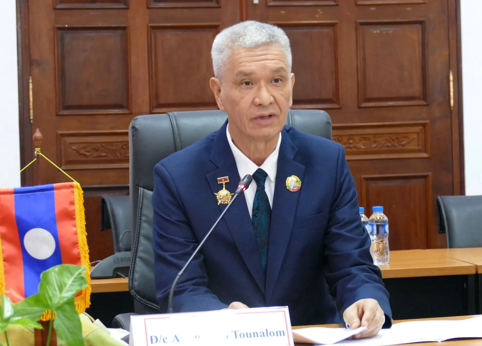 Bí thư Thành ủy Vientiane Anouphap Tounalom phát biểu tại cuộc hội đàm. Ảnh: Bá Thành