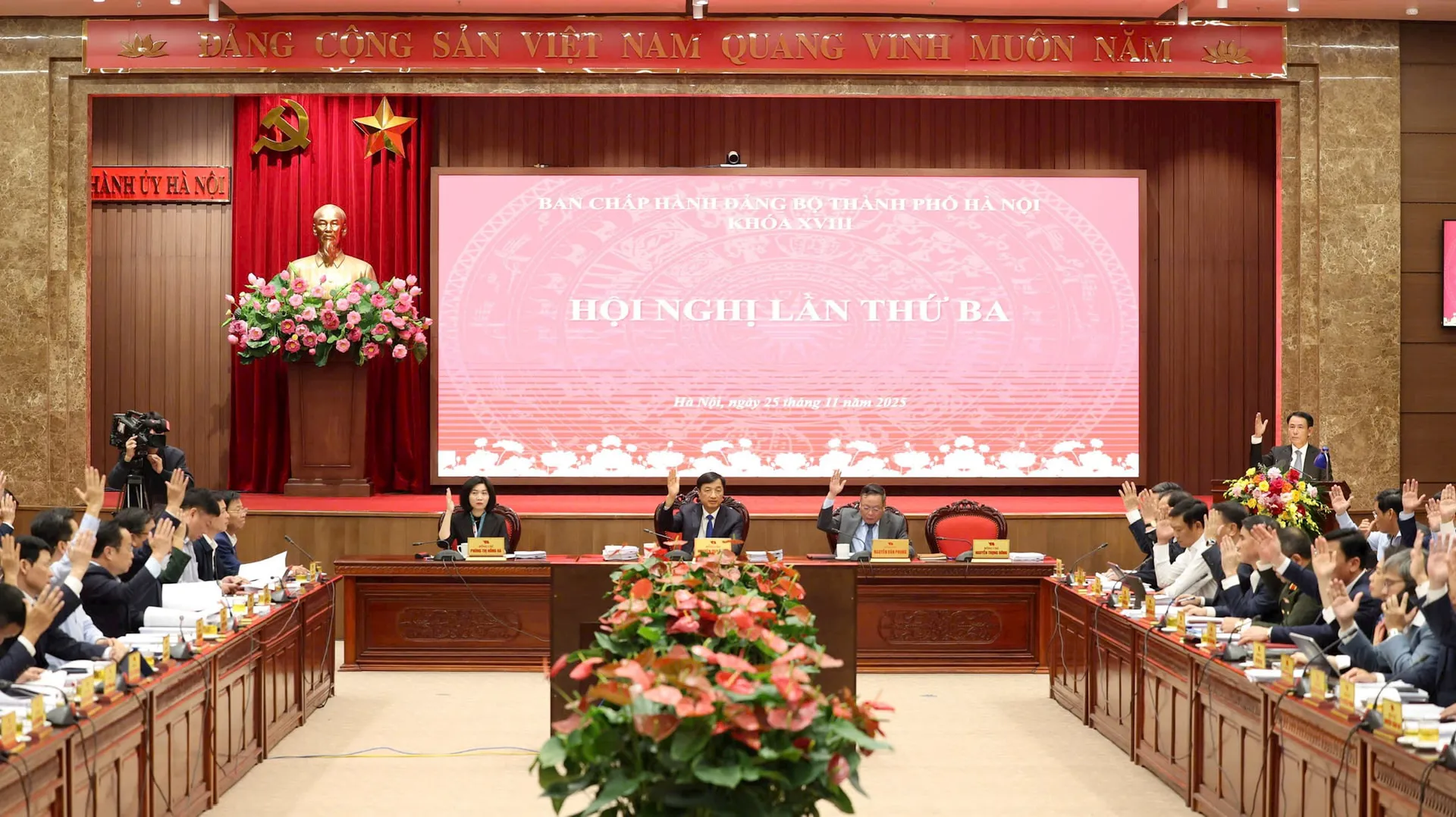 Quang cảnh Hội nghị lần thứ ba Ban Chấp hành Đảng bộ thành phố Hà Nội khóa XVIII. Ảnh: Thanh Hải