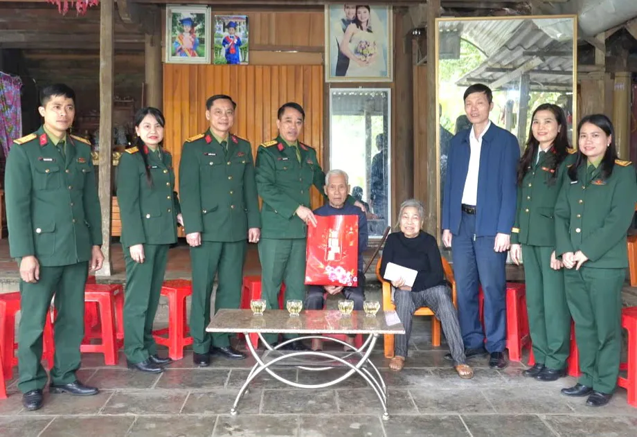 Đoàn công tác của Bộ Chỉ huy Quân sự tỉnh Hà Tĩnh trao tặng quà Tết cho gia đình ông Lê Trọng Hưng ở xã biên giới Sơn Kim 2.