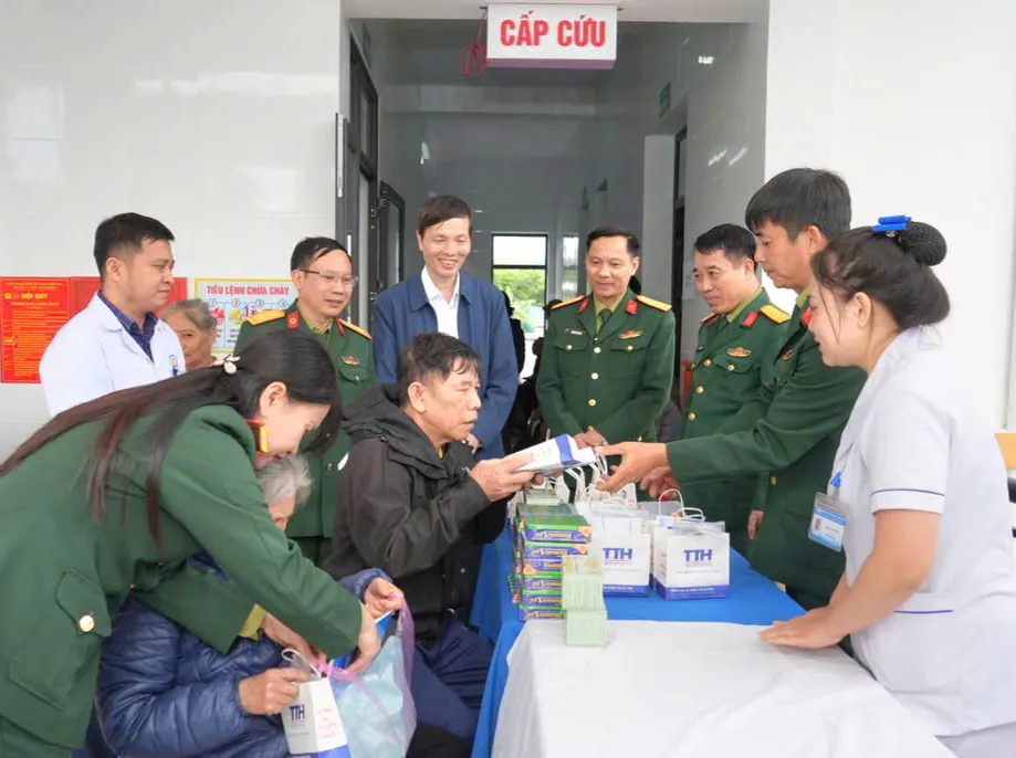 Dip gần Tết Nguyên đán Bính Ngọ, cán bộ, chiến sĩ Bộ Chỉ huy Quân sự tỉnh Hà Tĩnh phối hợp với Bệnh viện TTH Hà Tĩnh và các cơ quan, địa phương liên quan tổ chức khám bệnh, cấp thuốc miễn phí cho người dân khu vực biên giới.