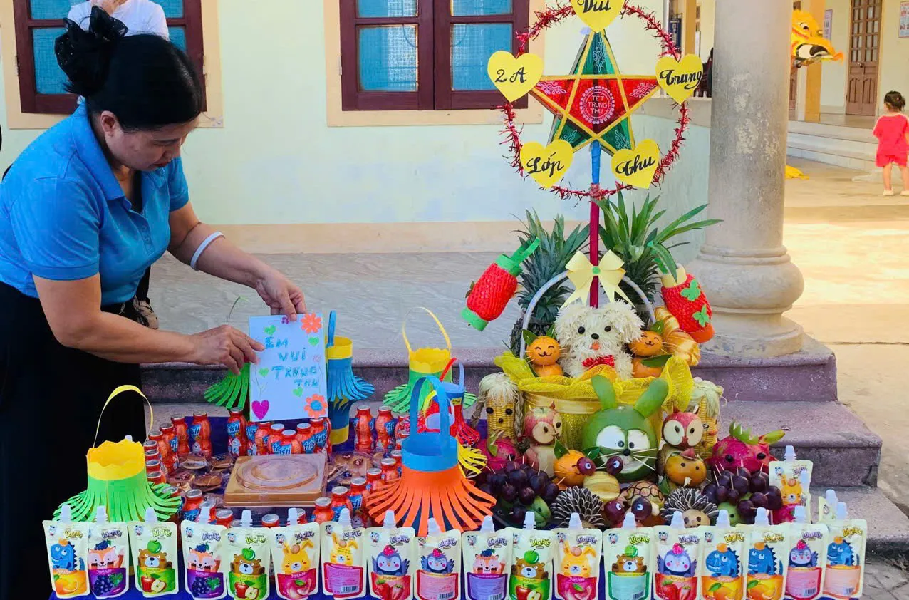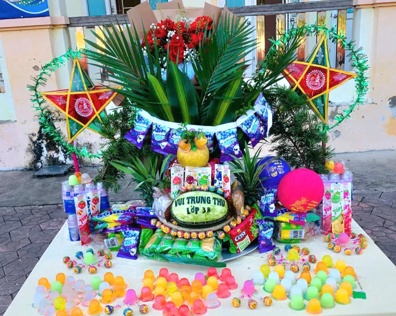 Tùy vào điều kiện cụ thể của mỗi cơ quan, địa phương, nhưng mâm cỗ Tết Trung thu đều được trang trí rất đẹp, có đèn ông sao, hoa quả, bánh kẹo...để các em cùng nhau vui hội trăng rằm.