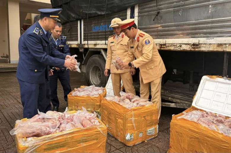 Qua kiểm tra, lực lượng chức năng phát hiện trên xe chở 4 thùng xốp với tổng trọng lượng 200kg, bên trong chứa thực phẩm (bắp giò heo rút xương) không có nhãn mác, không có giấy tờ chứng minh nguồn gốc, xuất xứ hợp pháp. Tổ công tác đã lập biên bản, tạm giữ toàn bộ tang vật, đồng thời bàn giao số hàng cùng hồ sơ liên quan cho Chi cục Quản lý thị trường Hà Tĩnh xử lý, tiêu hủy theo quy định.