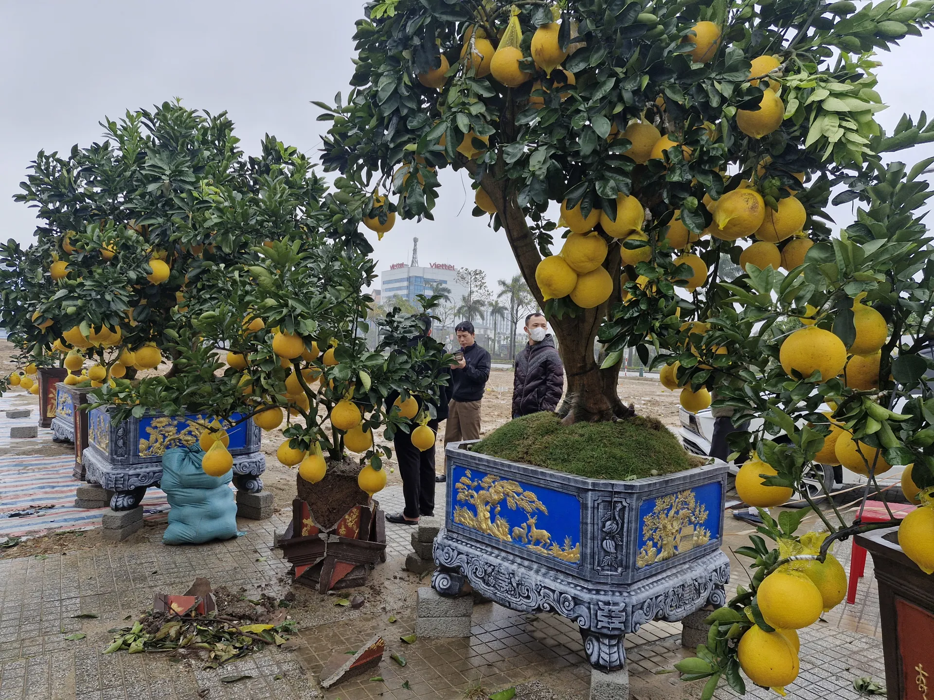 "Cây bưởi cao lớn, quả sum suê hoặc cây loại vừa sẽ được bán với giá khác nhau, dao động từ 25- 50 triệu đồng/cây. Hiện tại khách chủ yếu đến xem cây, tham khảo giá bán, trong đó một số người đã bắt đầu mua về trưng Tết" - anh Nguyễn Văn Long ở phường Trần Phú cho biết.