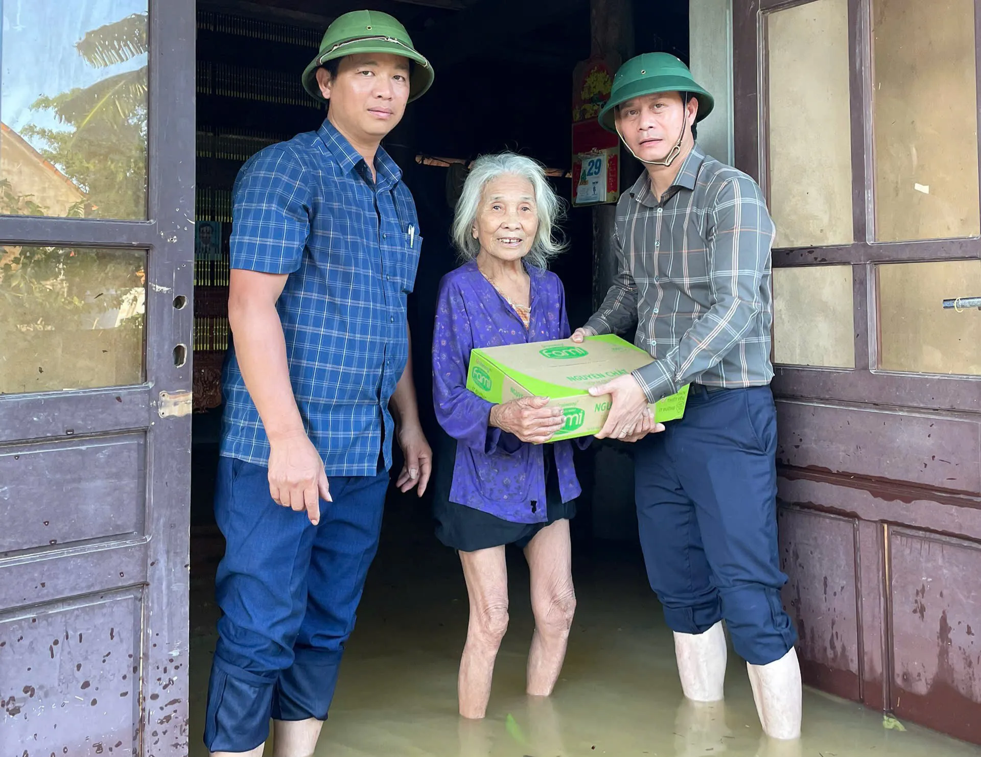 Nhiều người già yếu hoặc hoàn cảnh neo đơn ở vùng rốn lũ được nhận những suất quà cứu trợ có ý nghĩa thiết thực.
