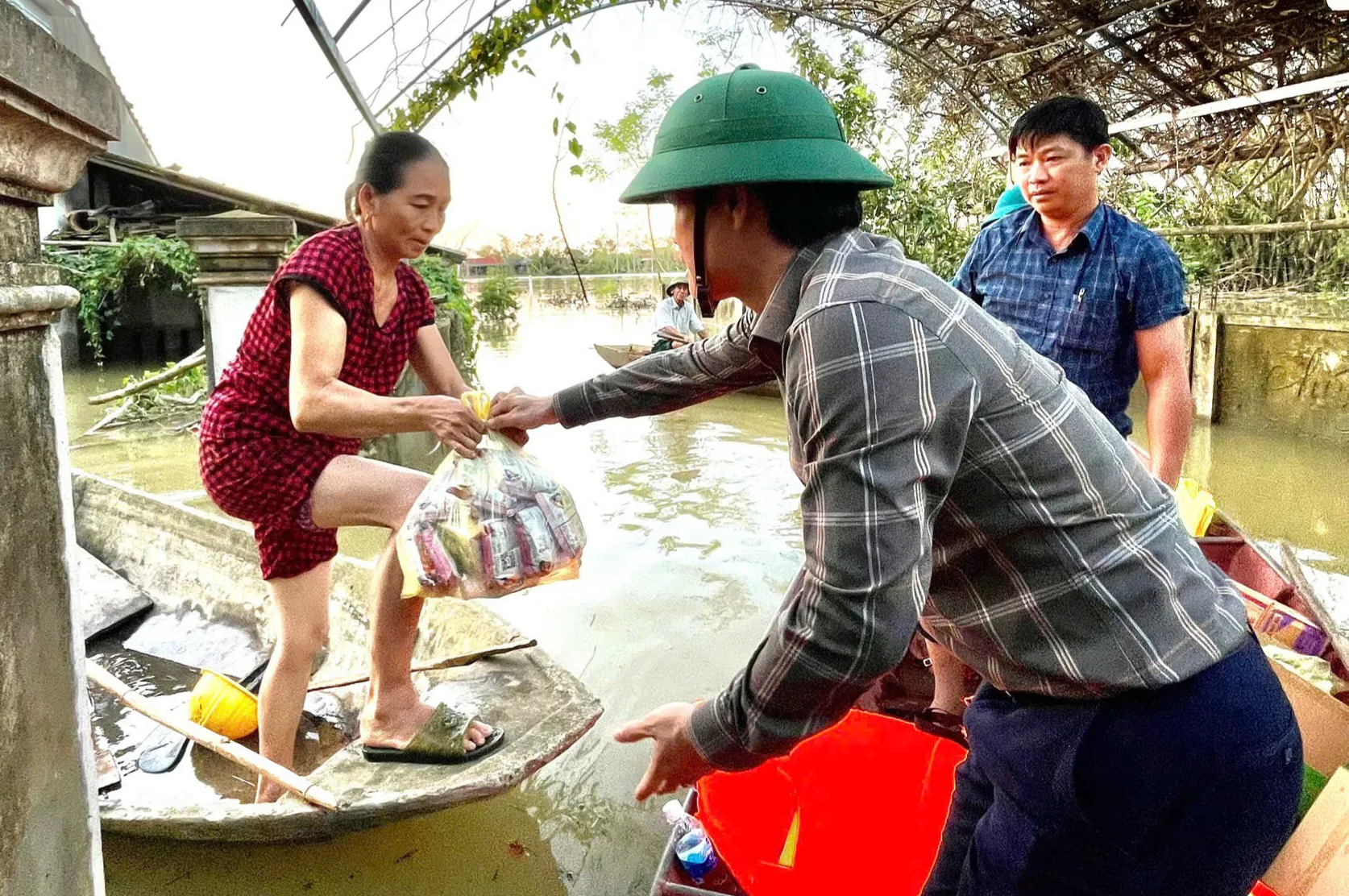 Trước tình hình đó, chính quyền địa phương, các cơ quan, đơn vị, nhà hảo tâm đã chèo thuyền vượt lũ đến thăm hỏi, trao quà cứu trợ cho người dân.