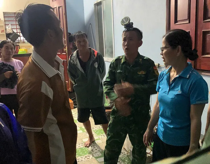 Cán bộ, chiến sĩ Đồn Biên phòng Kỳ Khang thăm hỏi, động viên ngư dân không may bị lốc xoáy đánh chìm thuyền trên biển.