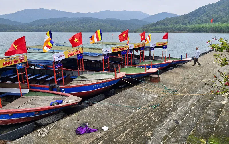 Kinhtedothi - Ngày mùng 4 Tết Nguyên đán Ất Tỵ, số lượng người dân, du khách du thuyền hồ Nhà Đường ở Khu du lịch chùa Hương Tích, tỉnh Hà Tĩnh giảm hơn nhiều so với trước đây.