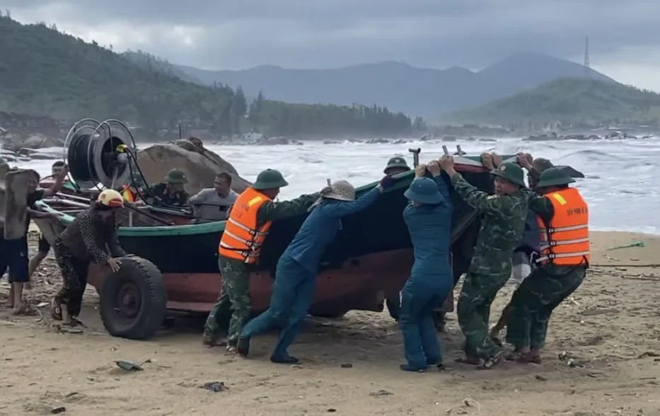 Để phòng ngừa thiệt hại, chính quyền và các lực lượng chức năng ở tỉnh Hà Tĩnh đã nhanh chóng hỗ trợ, giúp đỡ ngư dân đưa tàu thuyền lên bờ, phòng ngừa sự cố va đập, hư hỏng tàu thuyền do mưa bão