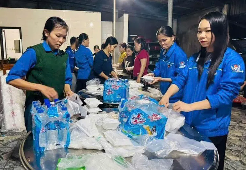 Với tình cảm sẻ chia vì cộng đồng, nhiều địa phương ở tỉnh Hà Tĩnh đã chuẩn bị cơm, nước uống và các nhu yếu phẩm cứu trợ người dân vùng lũ.