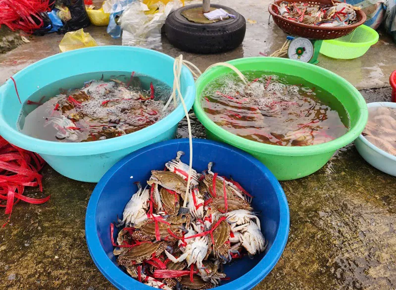 Sản lượng ghẹ biển đánh bắt được nhiều, công tác thu mua tại các bến thuyền diễn ra nhanh chóng, nguồn hàng đảm bảo tươi ngon.