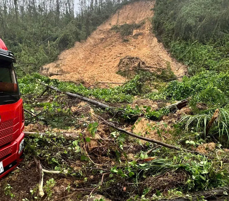 Tại tuyến đường ven biển (ĐT547) liên tục xảy ra sạt lở đất nghiêm trọng, giao thông chia cắt hoàn toàn. Điều đáng nói, trong khi các đơn vị quản lý đường bộ đang tập trung huy động máy móc xử lý đất đá bị sạt lở thì một khối lượng rất lớn đất đá từ trên núi cao tiếp tục sạt lở khiến máy xúc và xe ô tô tải bị xô đổ, lật xuống taluy âm. Sự việc khiến 2 người bị thương nặng phải đưa đi cấp cứu.