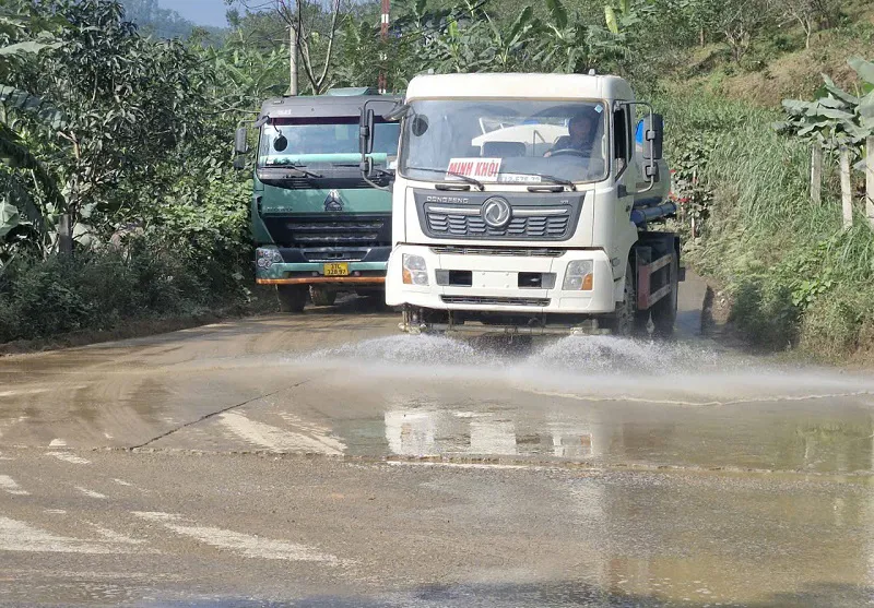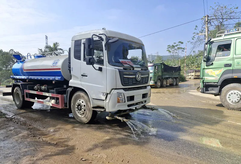 Công ty cổ phần Đức Toàn huy động xe bồn công suất lớn xịt rửa trên tuyến quốc lộ 15A, phòng ngừa ô nhiễm bụi bặm.