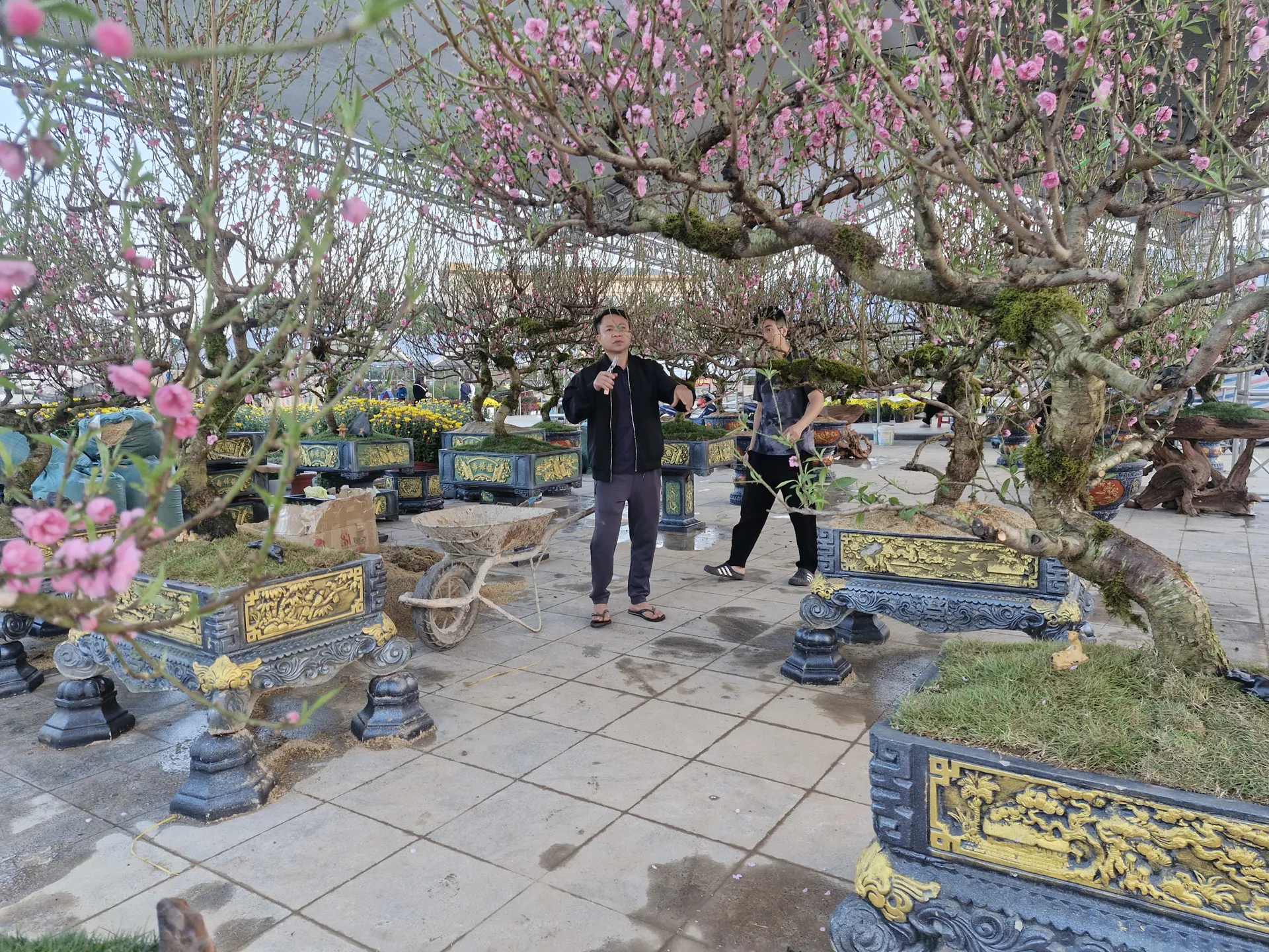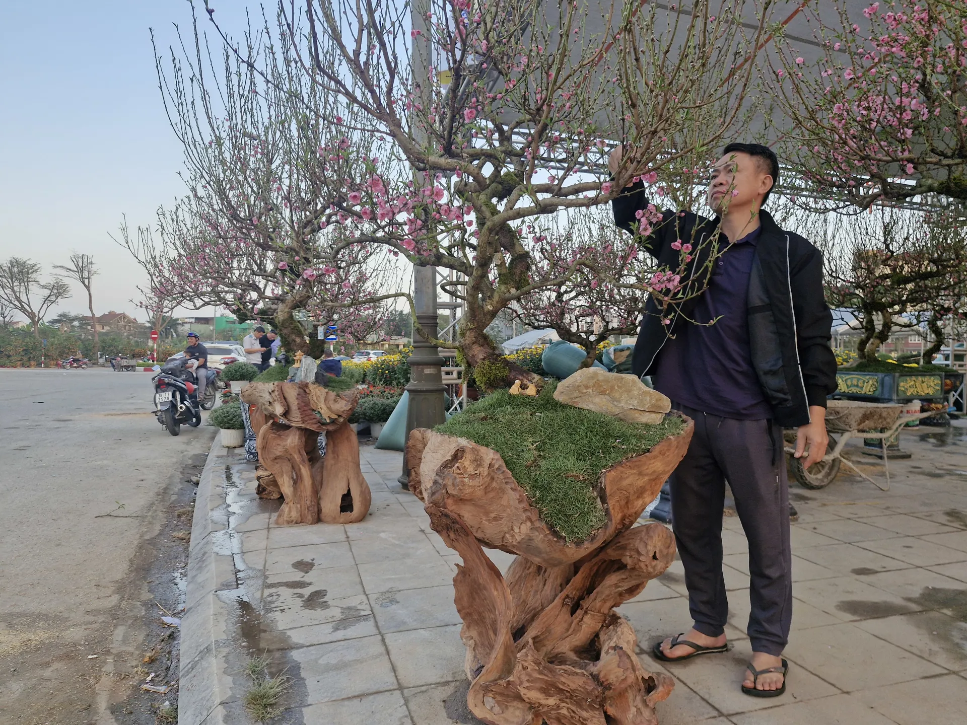 "Bước đầu chúng tôi đưa về 50 cây đào cổ thụ từ các tỉnh Tây Bắc. Cây được trồng trong chậu bê tông hoặc đế gỗ nghiến, giá bán dao động từ 10-15 triệu đồng/cây. Hiện tại sức tiêu thụ chưa cao, khách hàng chủ yếu đang đi tham quan, lựa chọn cây phù hợp trong dịp Tết" - anh Võ Xuân Huy cho biết.