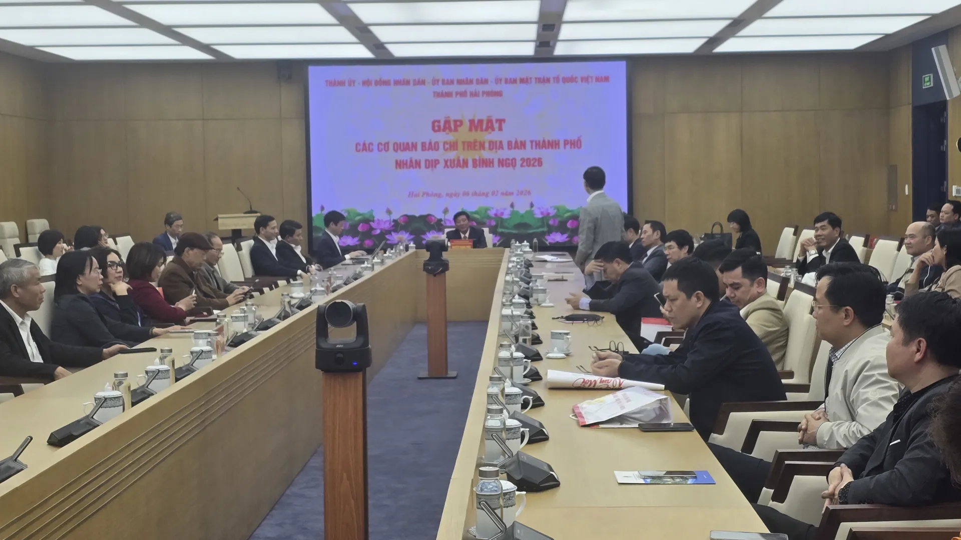 Kinhtedothi - Nhân dịp Xuân Bính Ngọ năm 2026, chiều 6/2, Thành ủy, HĐND, UBND, Ủy ban MTTQ Việt Nam thành Phố Hải Phòng tổ chức buổi gặp mặt các cơ quan báo chí trên địa bàn thành phố. Ông Nguyễn Quang Phúc, Ủy viên Ban Thường vụ, Trưởng Ban Tuyên giáo và Dân vận Thành ủy Hải Phòng chủ trì buổi gặp mặt.